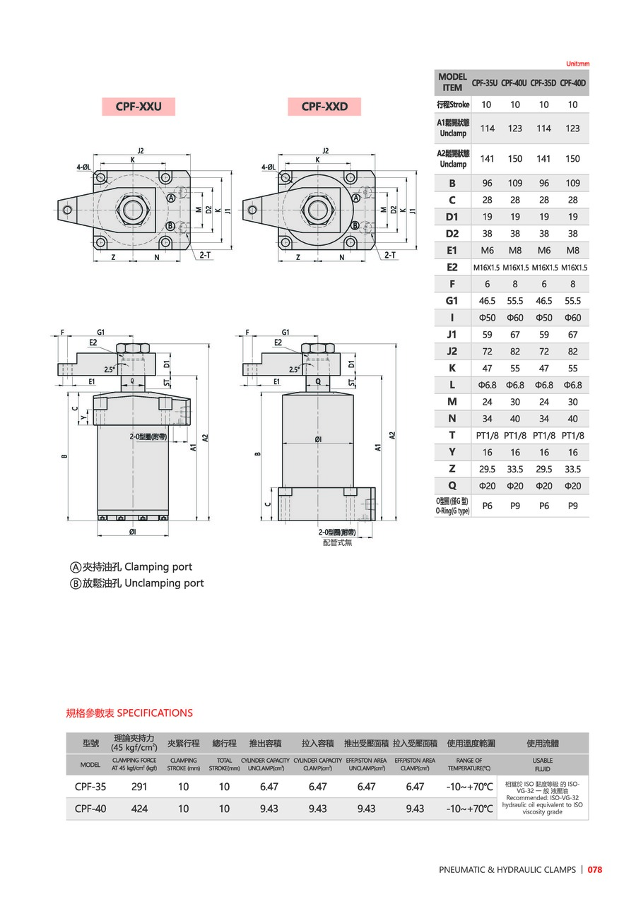 | 35 | 油缸内径 | Ø35, Ø40 |