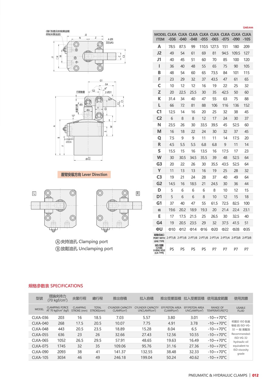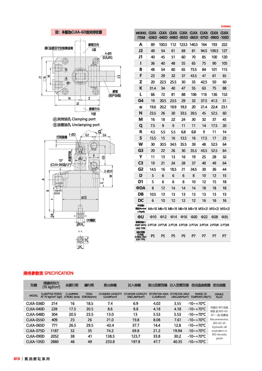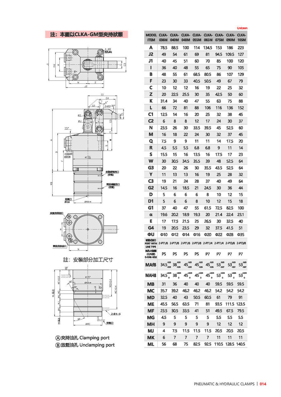 | 型号 | CLKA-036 | CLKA-040 | CLKA-048 | CLKA-055 | CLKA-065 | CLKA-075 | CLKA-090 | CLKA-105 |