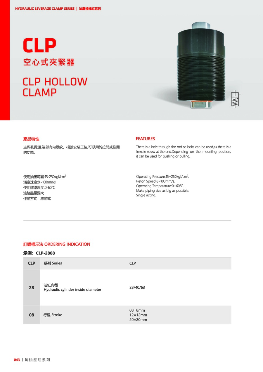 使用油压范围:15~250 kgf/cm²
