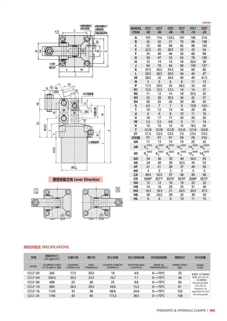 | L | 压臂安装方向 | 空白: 标准, L: 左, R: 右 |