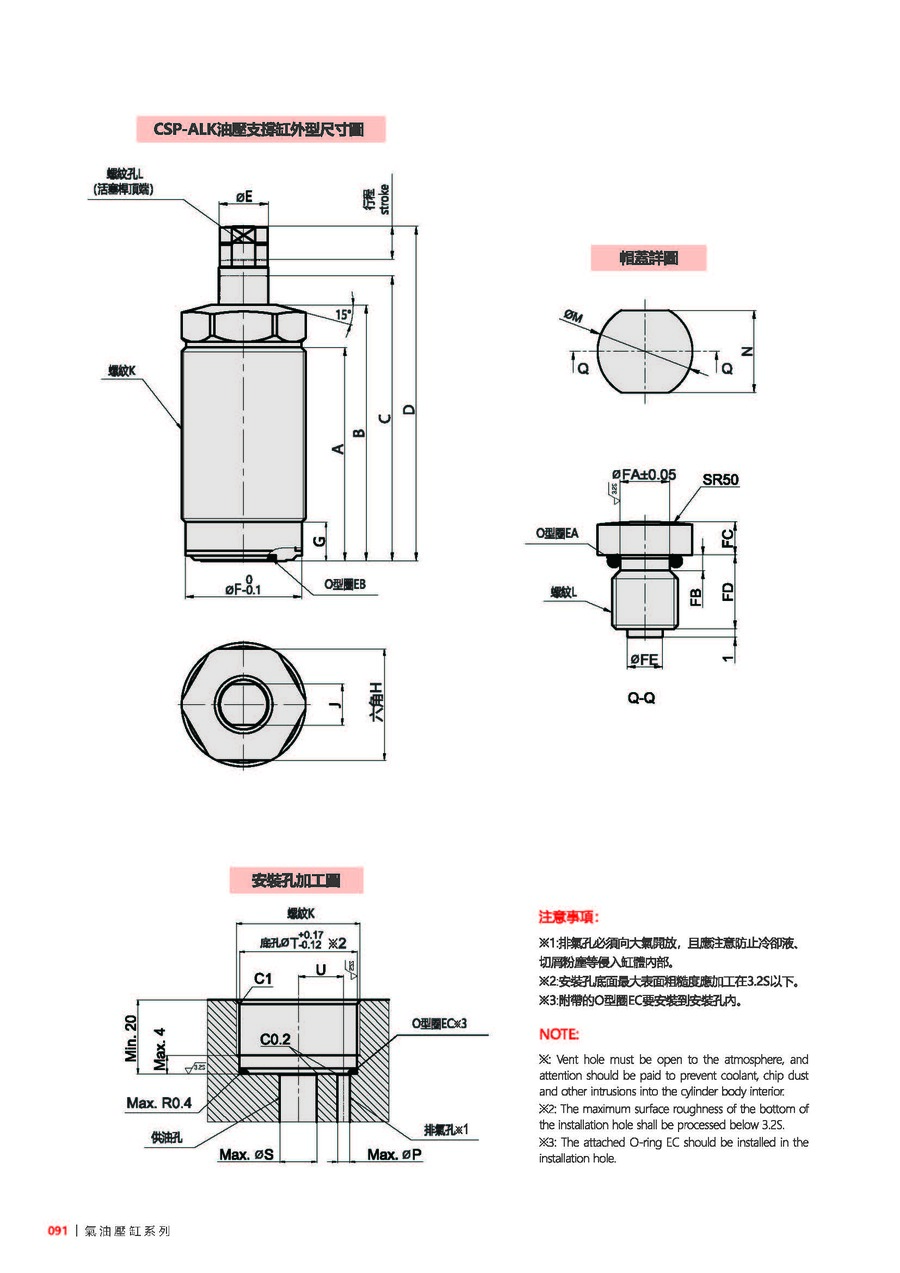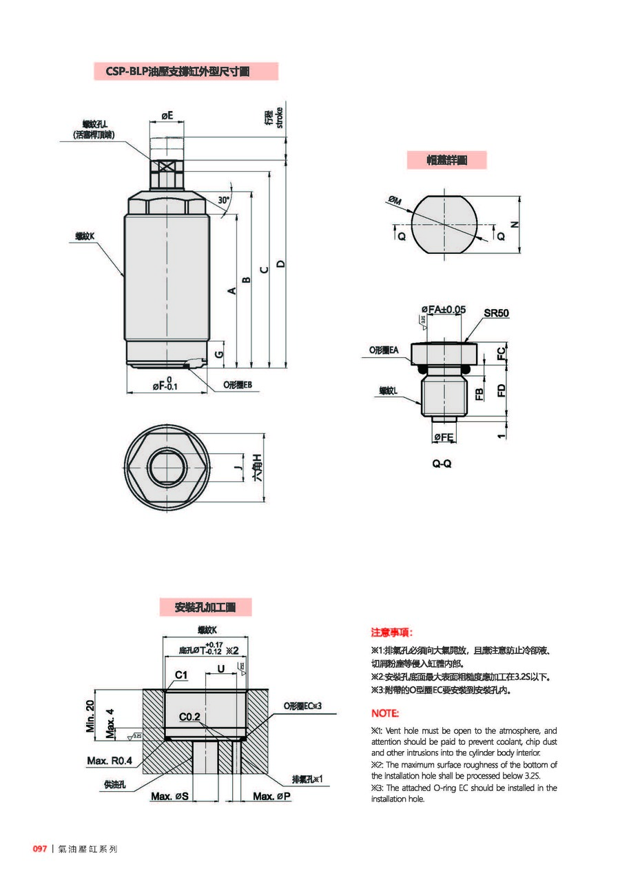 | 30 | 油缸外径 | M26x1.5, M30x1.5, M36x1.5, M45x1.5 |