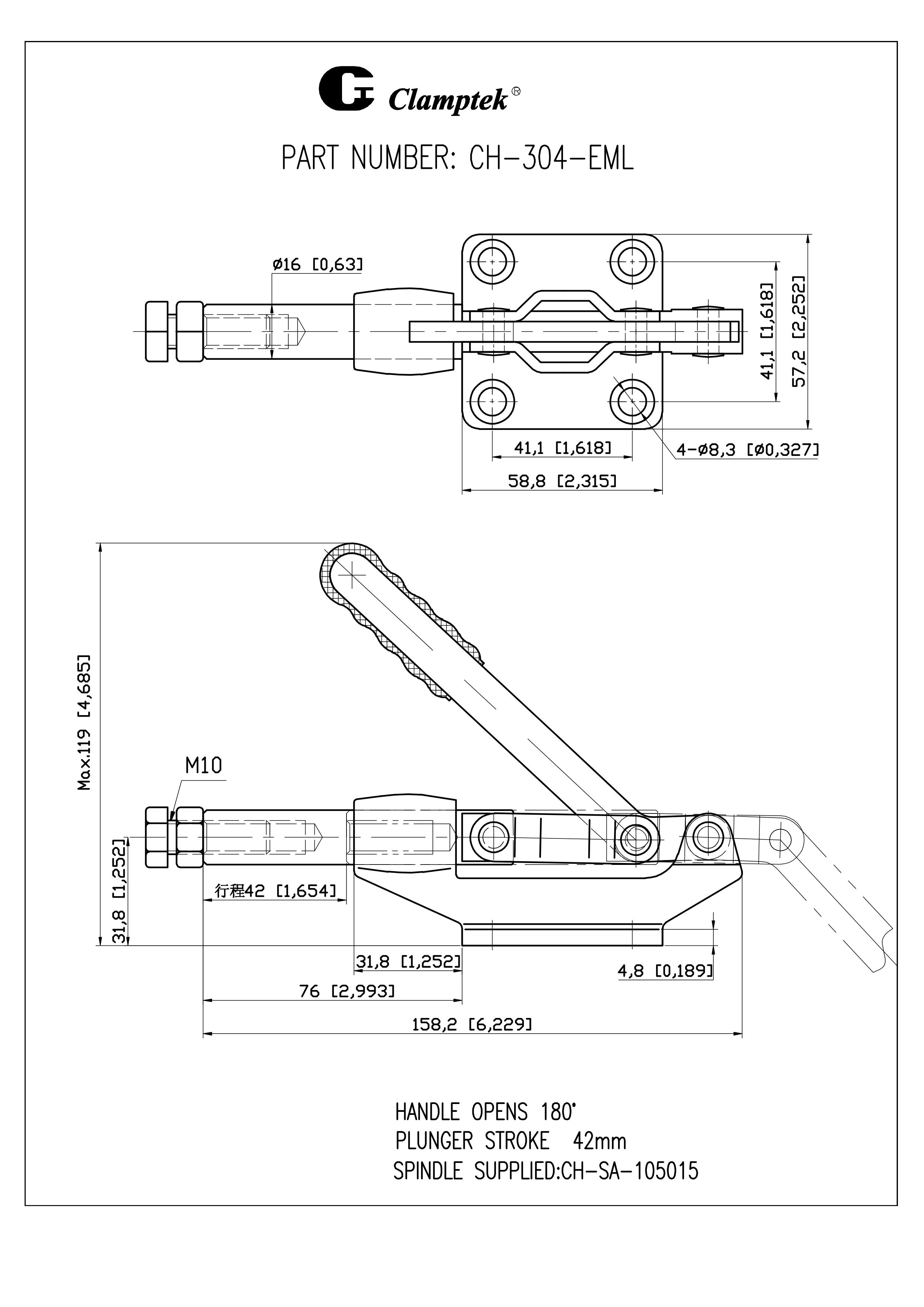 底座为铸钢。304-EM、305-EM手柄销轴孔装有耐磨套。
