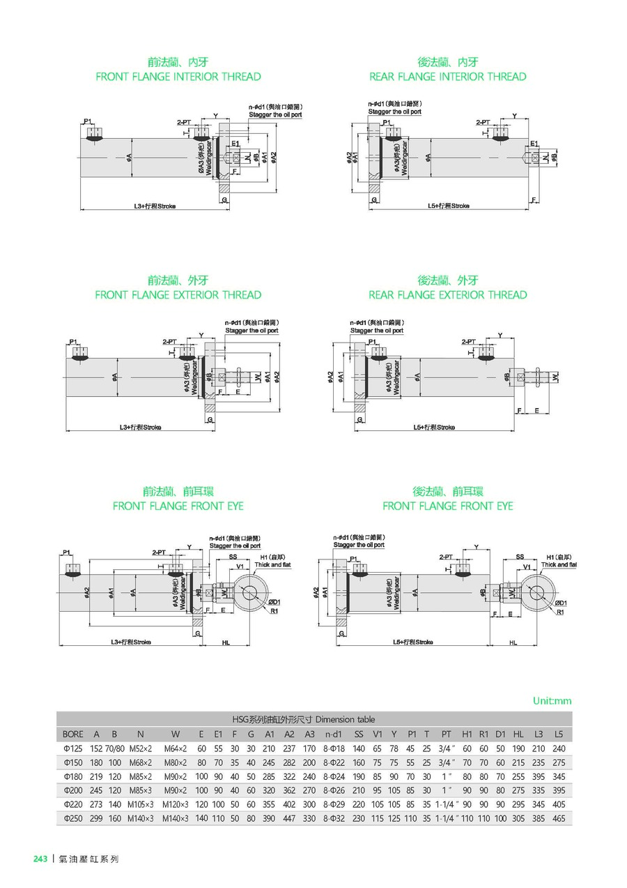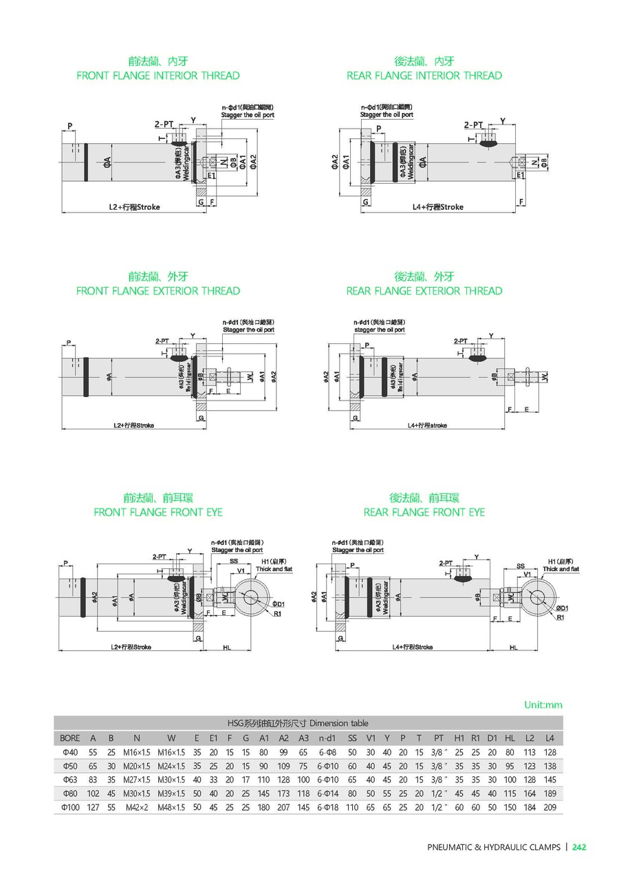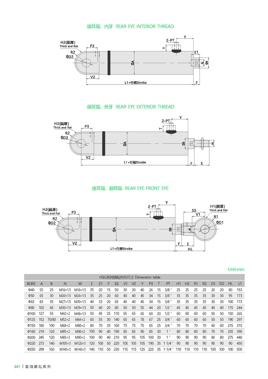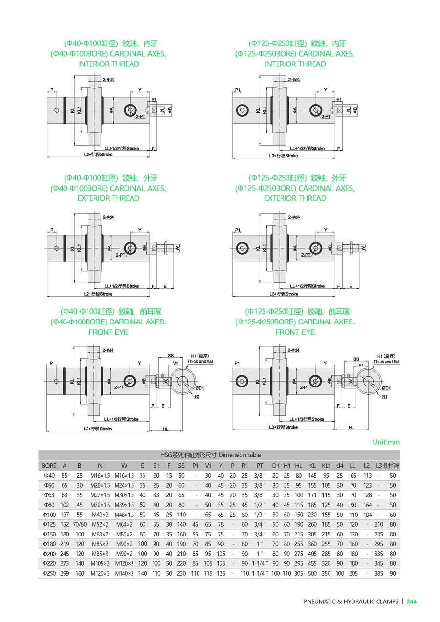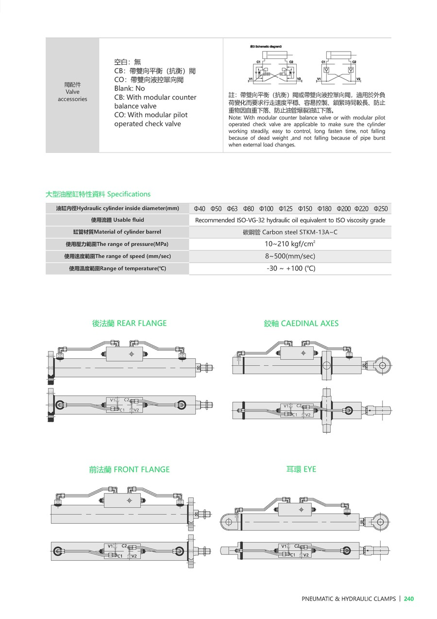 | D | 油缸内径 | Ø40, Ø50, Ø63, Ø80, Ø100, Ø125, Ø150, Ø180, Ø200, Ø225, Ø250 |