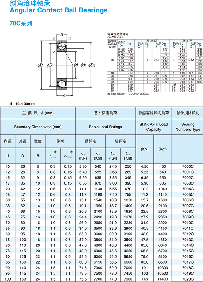 斜角滚珠轴承 70C系列