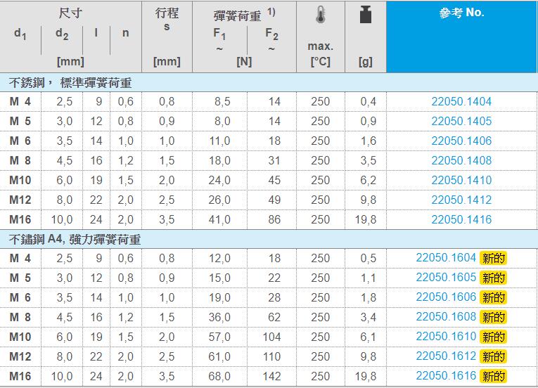 标准弹簧荷重:无标示