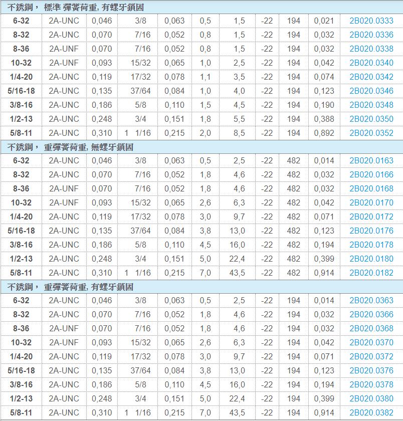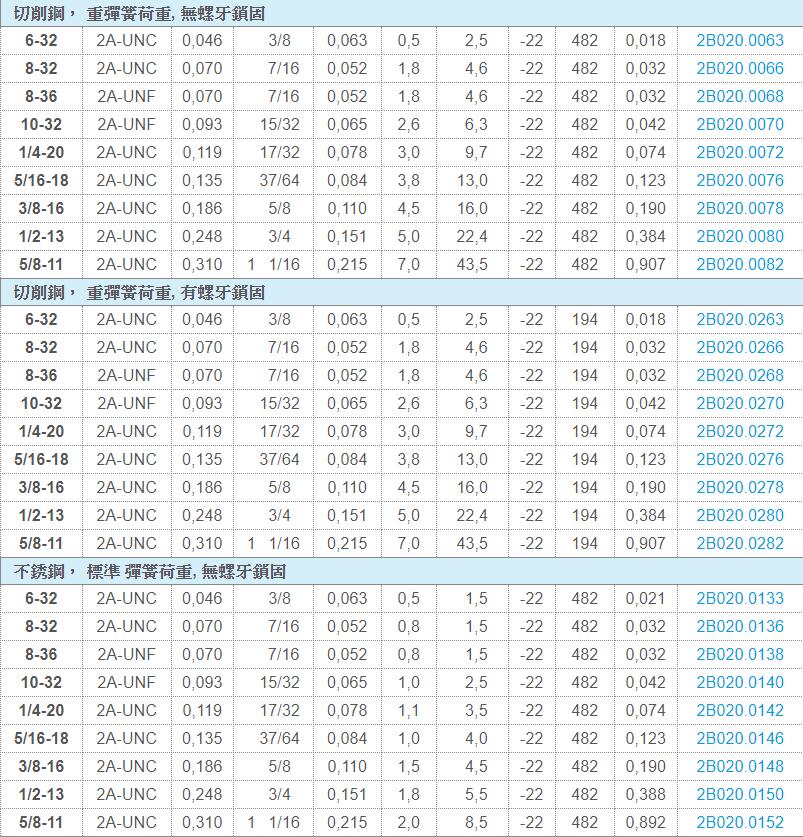 EH 2B020.带螺栓和槽 - 英吋(72种规格)