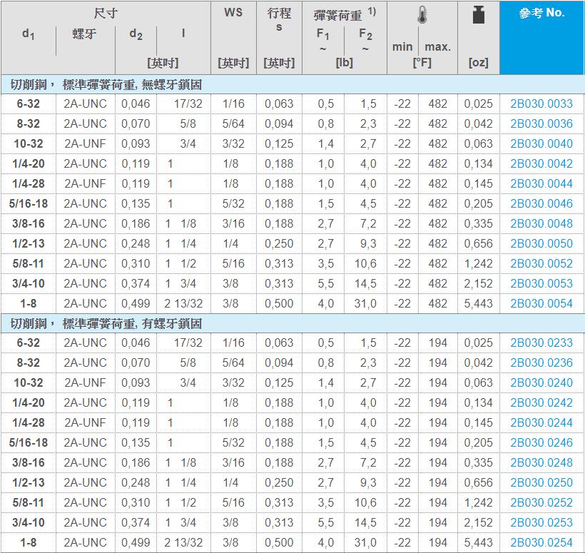 标准弹簧荷重:无标示