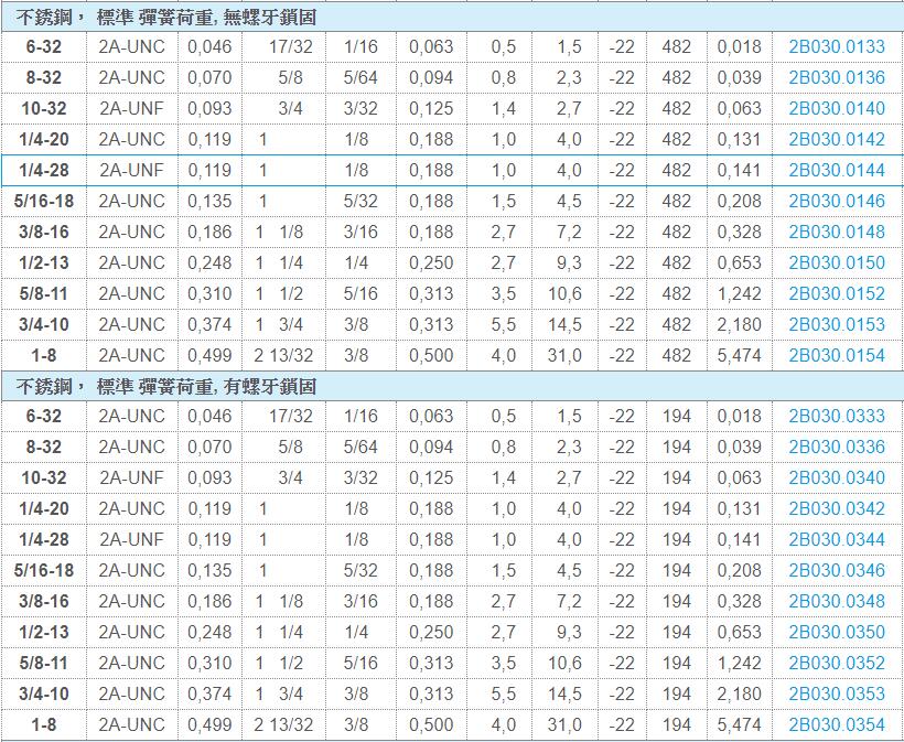 EH 2B030.带螺栓和内六角 - 英吋(88种规格)