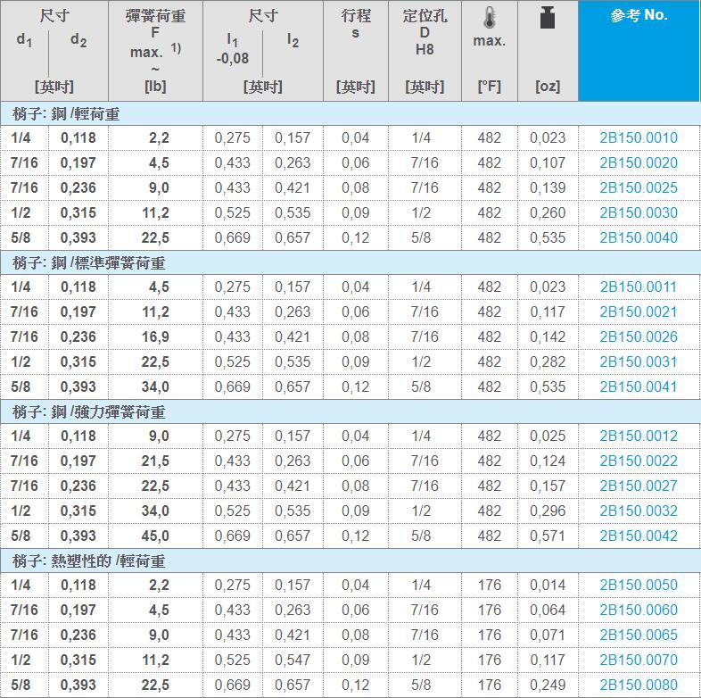 标准弹簧荷重 = 钢,染黑弹簧