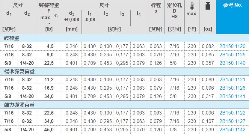 标准弹簧荷重 = 钢,染黑弹簧