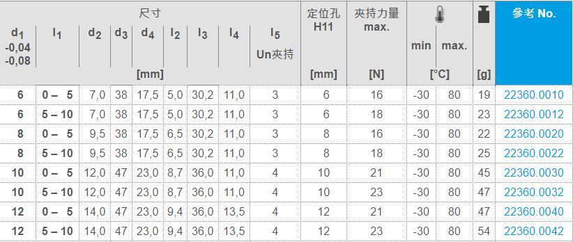 EH 22360.夹持销 - 自行锁附,带全长补偿(8种规格)