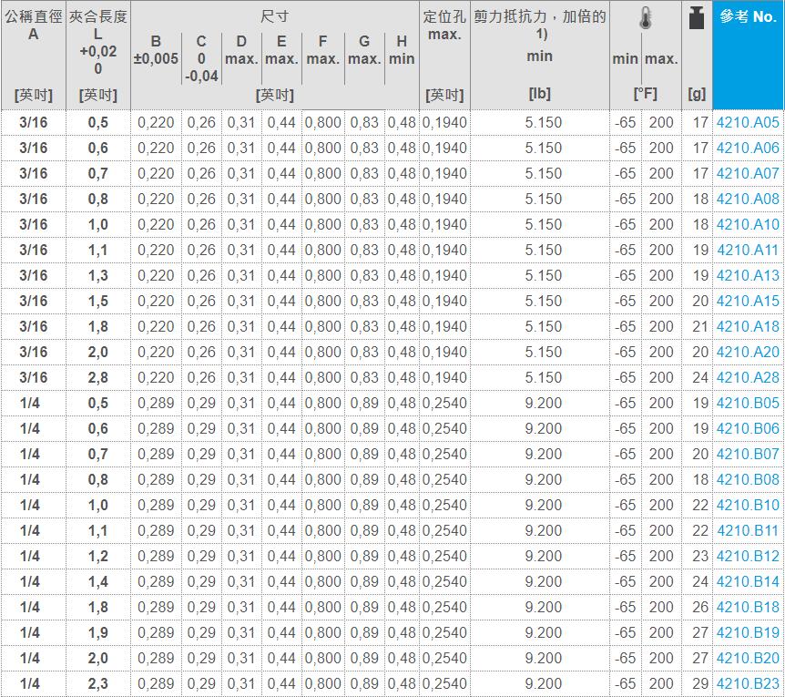 定位扣件符合 NASM(原规范: MS)用于快速紧固、锁定、调整、变换和固定。快速轻松地解锁以便于频繁重复的连接。