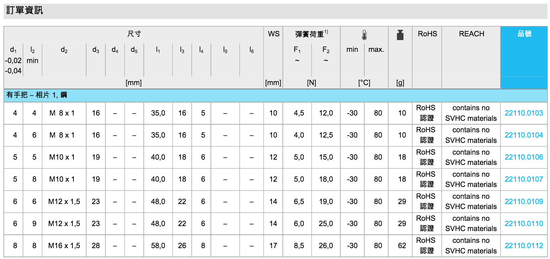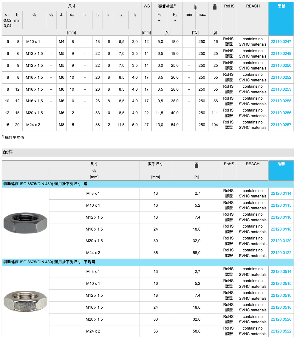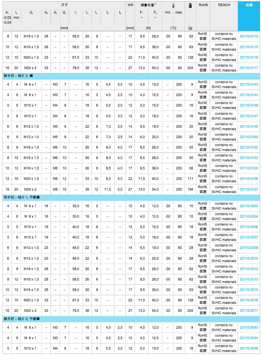 EH 22110.分割定位柱精实的 含六角形轴环(44种规格)