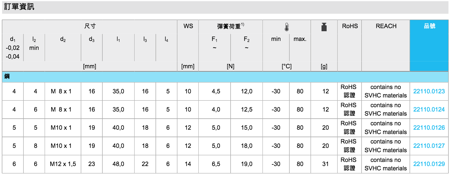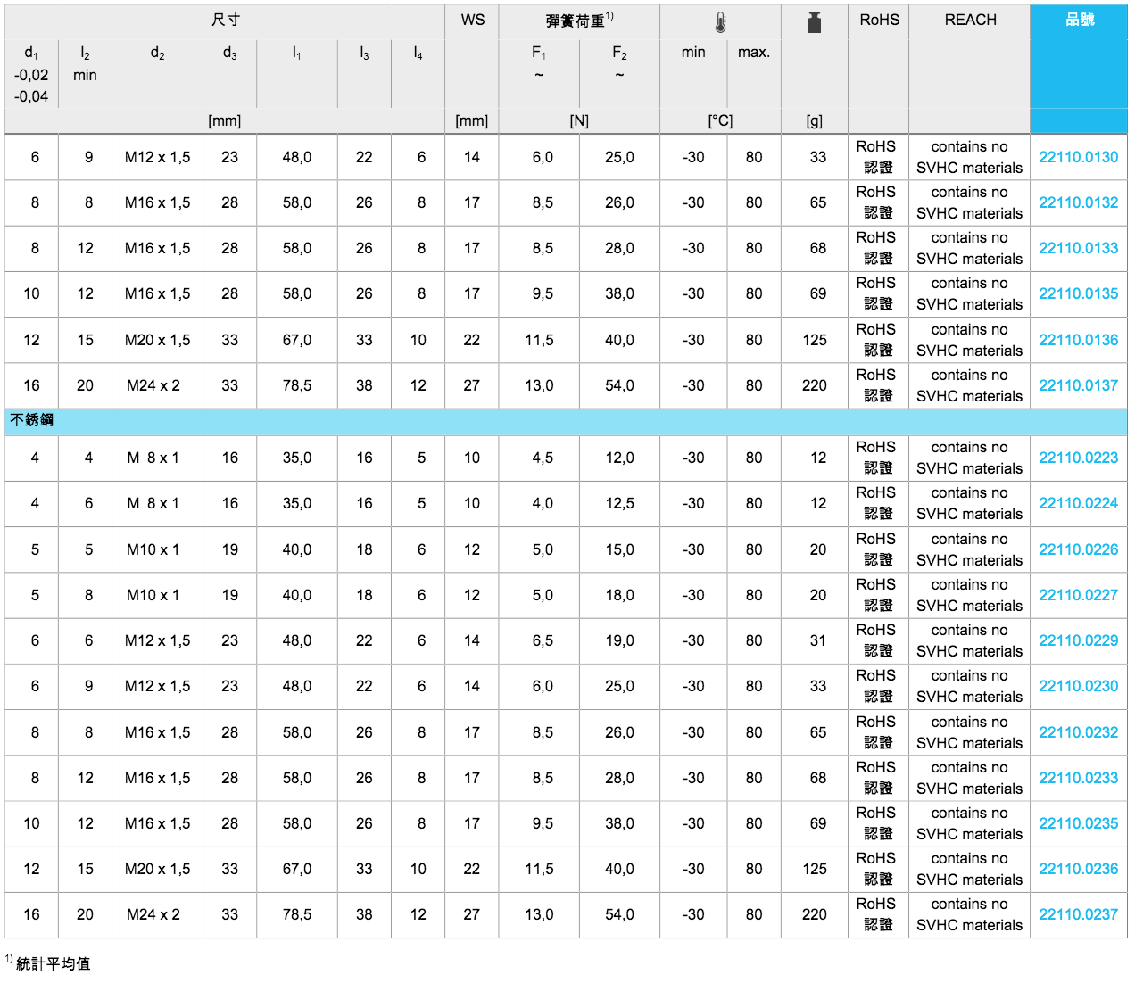 EH 22110.分割定位柱精实的 有六角环和锁固(22种规格)