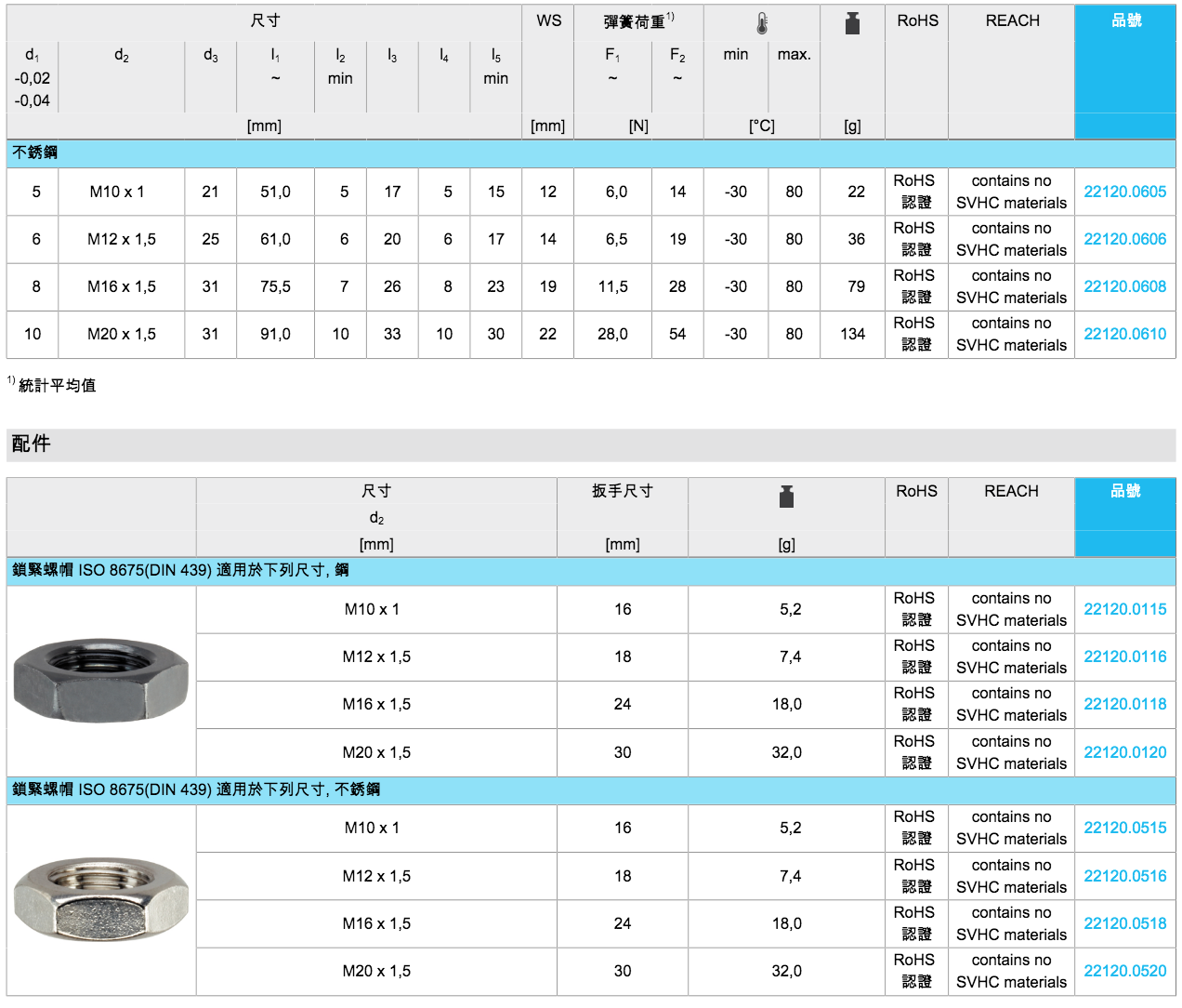 EH 22120.分割定位柱 有六角环和锁固(8种规格)