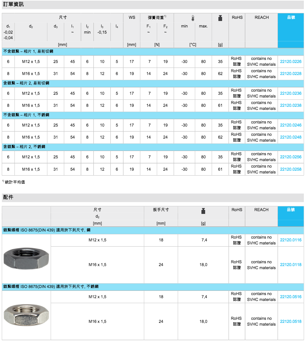 EH 22120.分割定位柱 有六角形轴环,短的(8种规格)