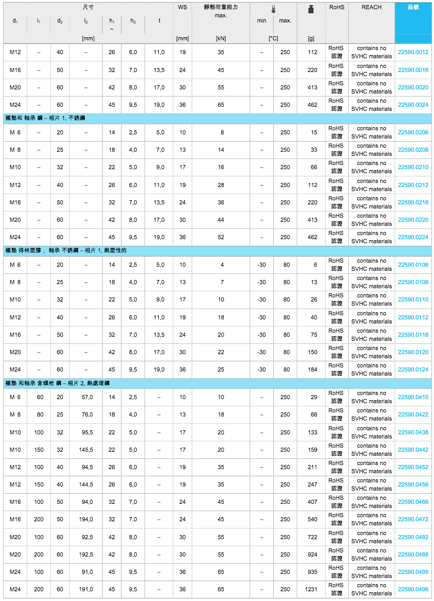 对于版本d1 = M10和M12,锁紧螺母符合DIN 934标准。