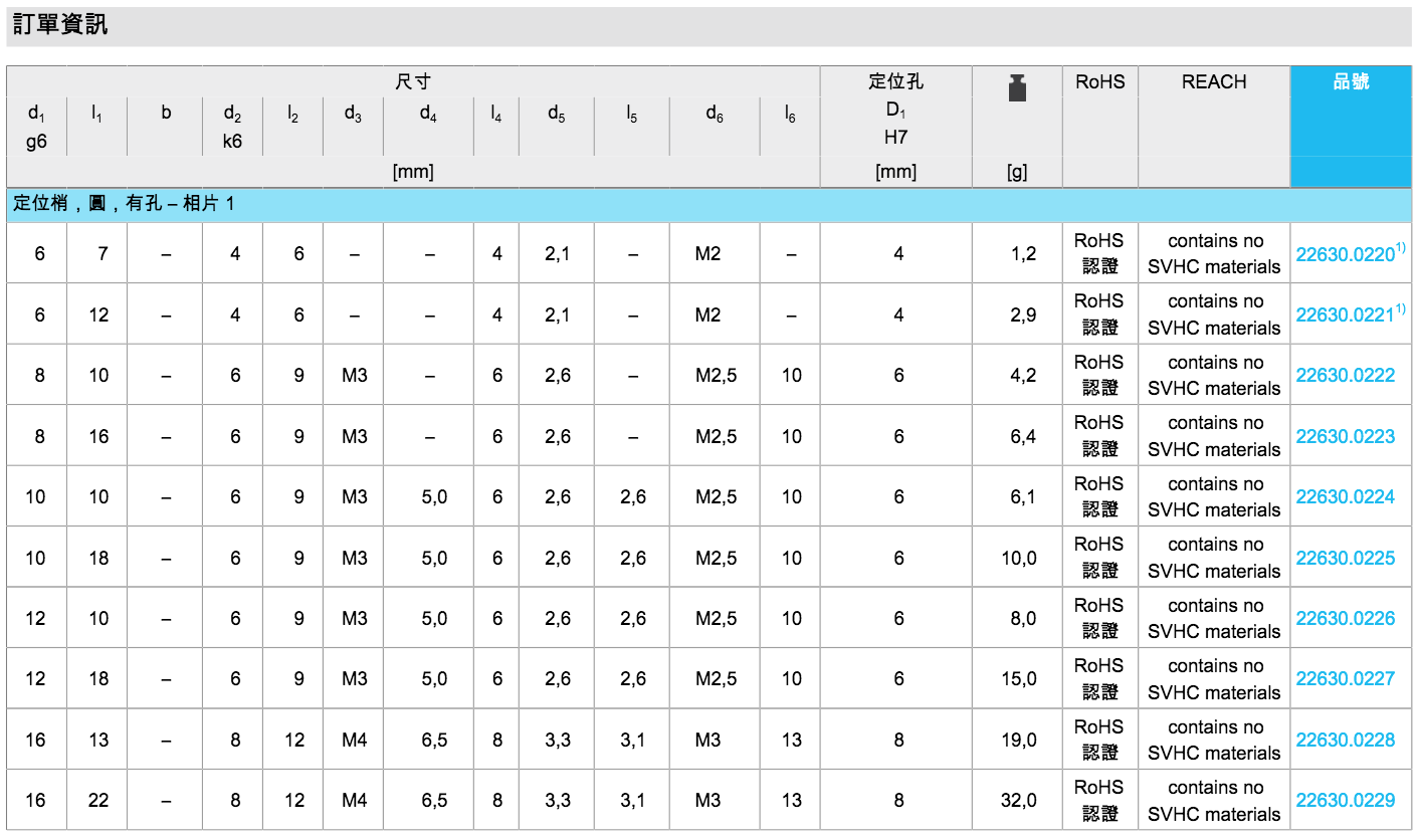 EH 22630.定位梢 有孔 类似 DIN 6321(28种规格)