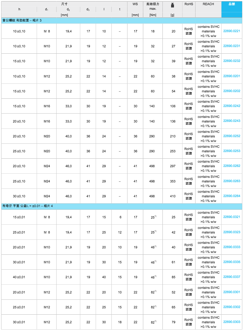 适合用作底座元件、止动元件及推力垫。