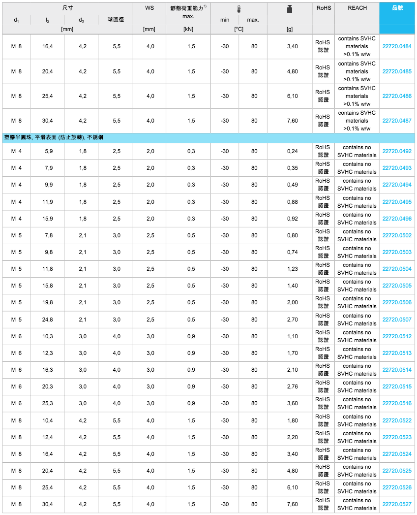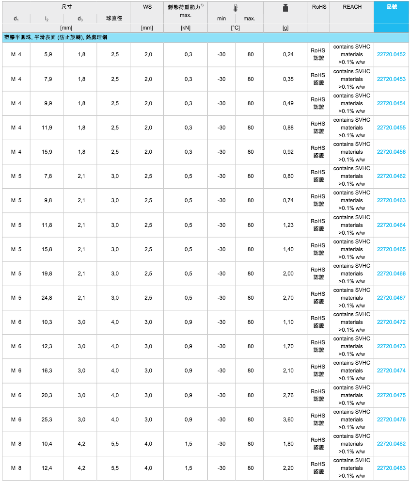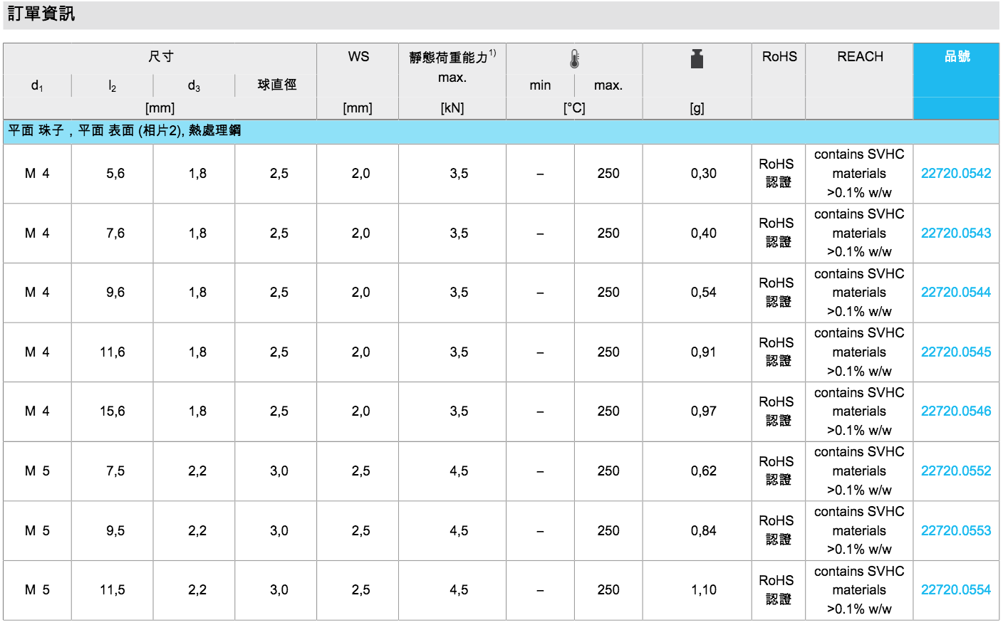 EH 22720.定位珠螺丝 无头,有平面的球(159种规格)