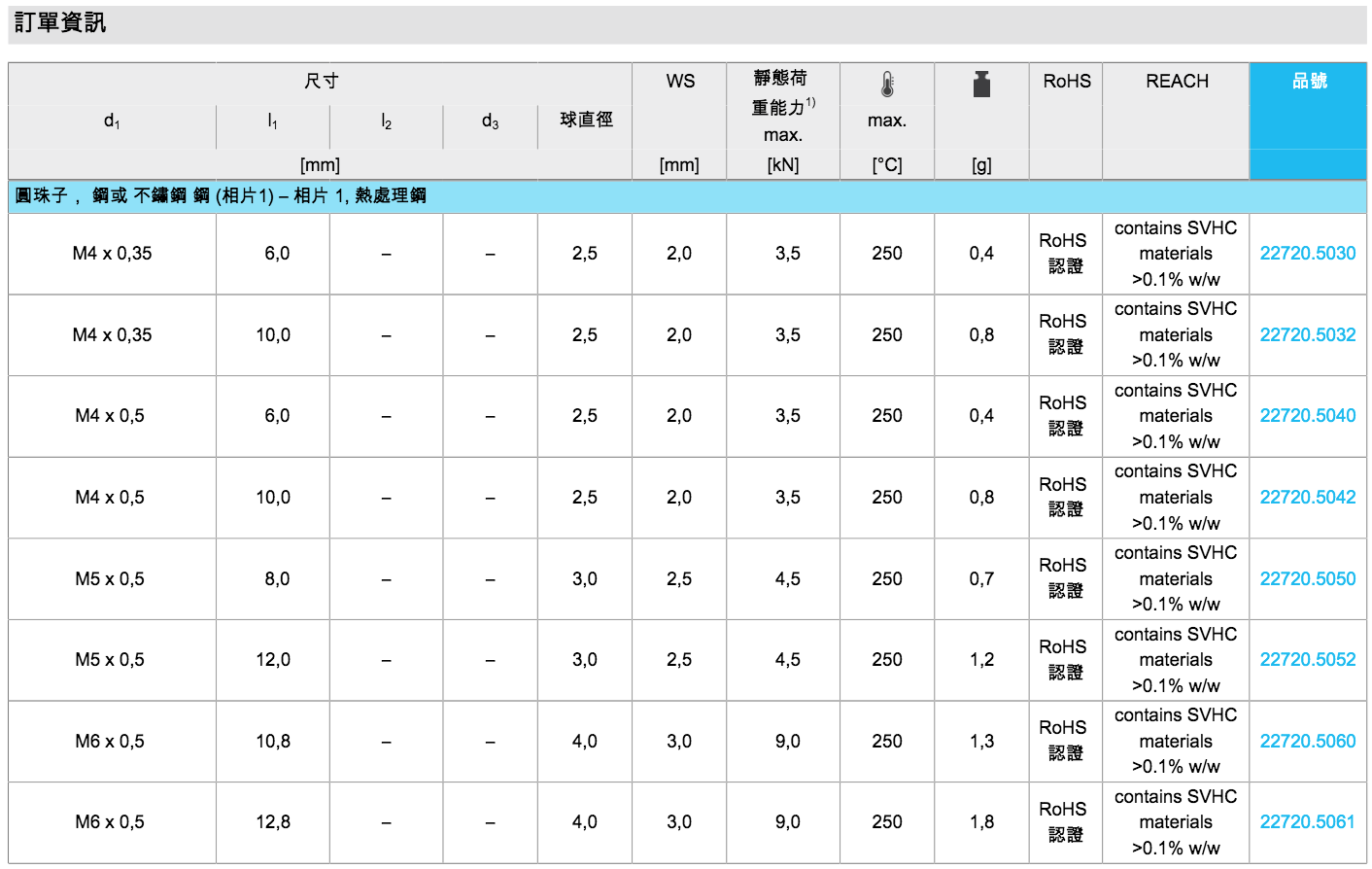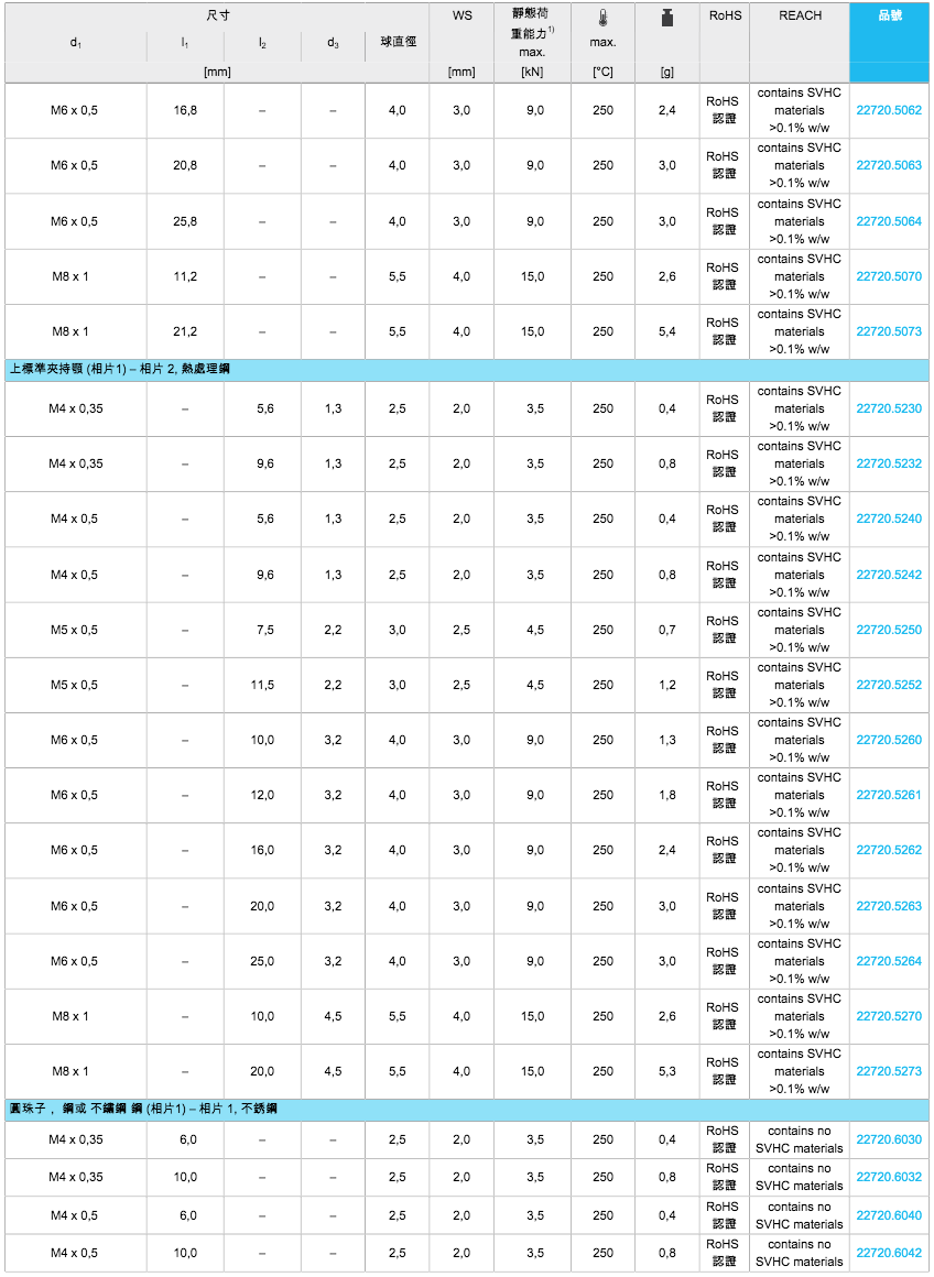 EH 22720.定位珠螺丝 无头,附细螺纹(52种规格)