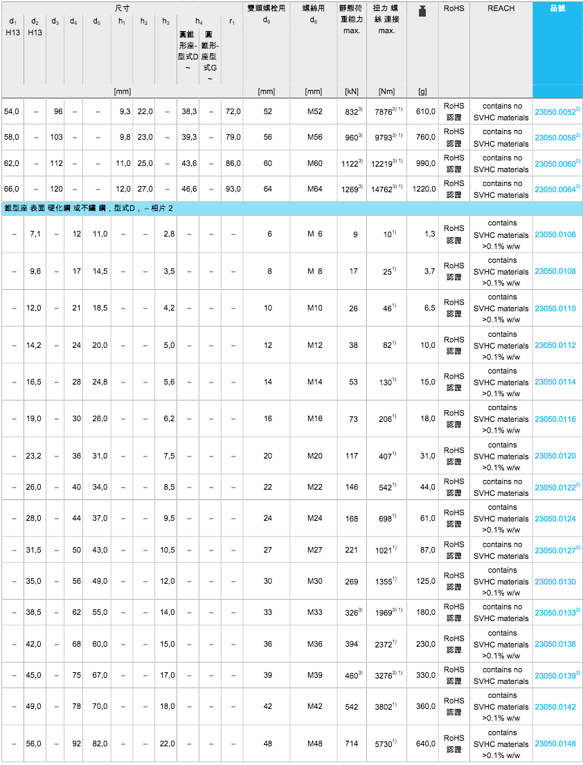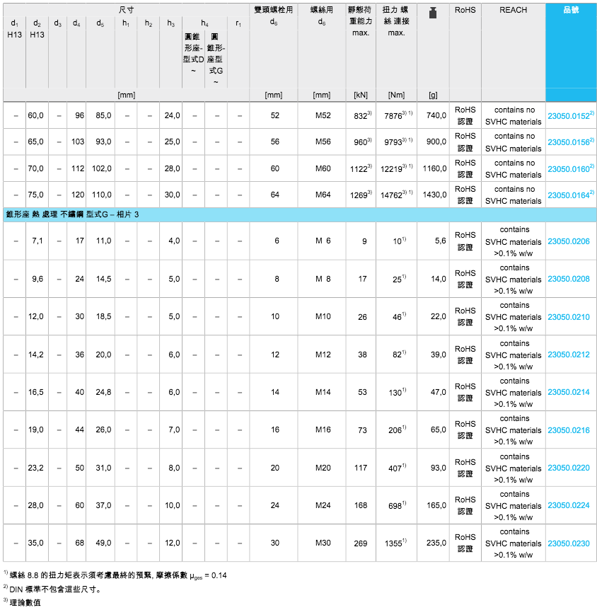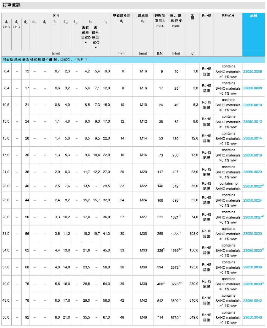 EH 23050.球面华司 / 圆锥型座 DIN 6319(49种规格)