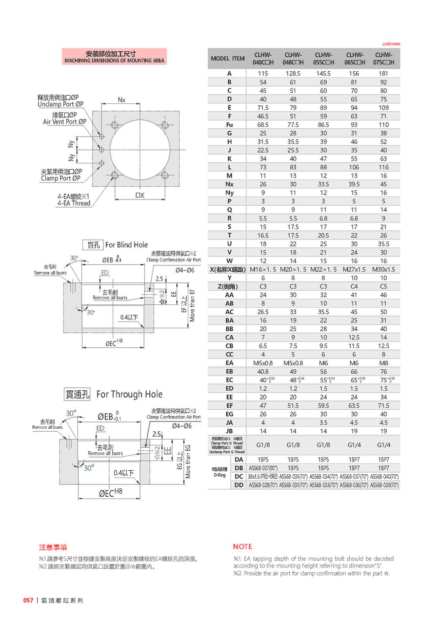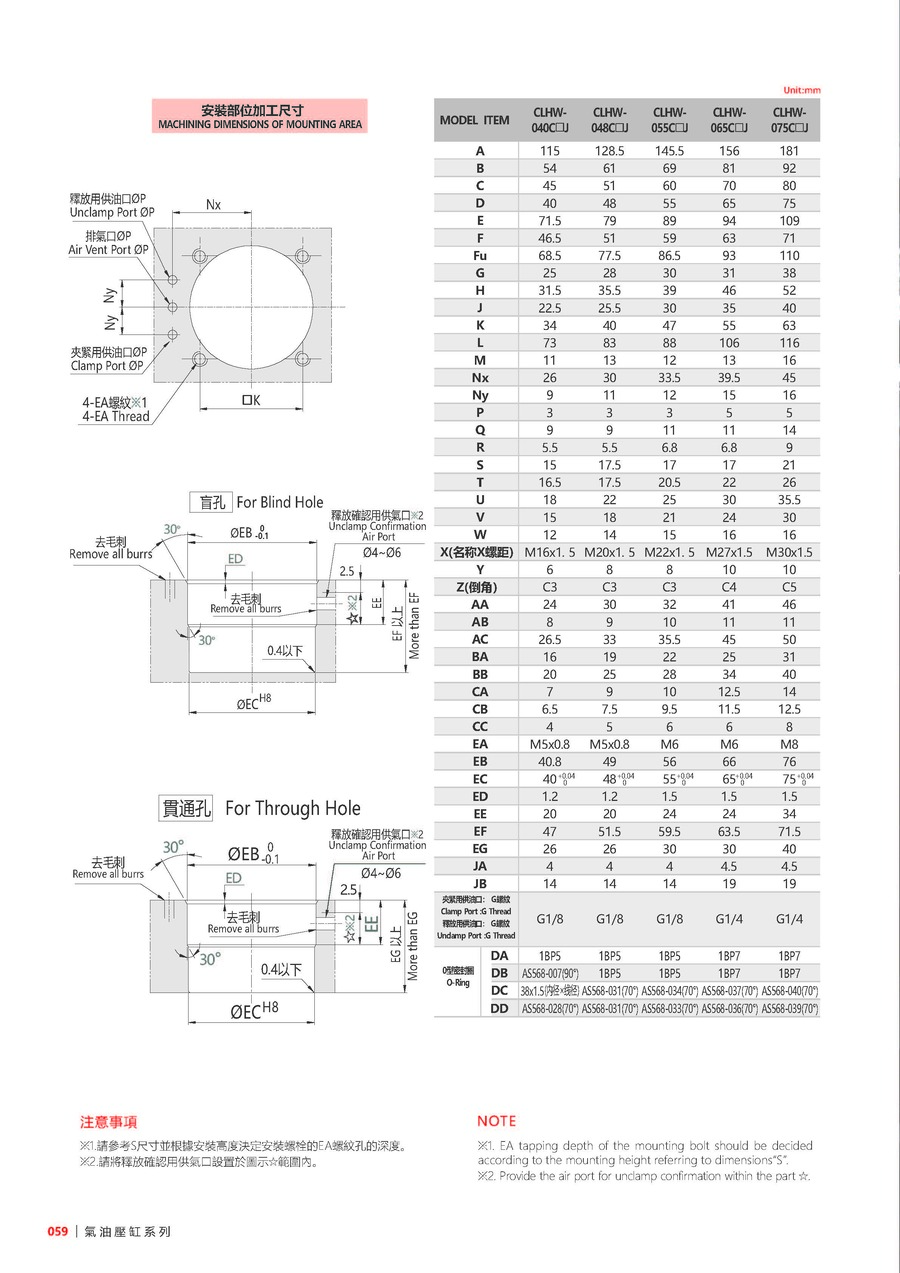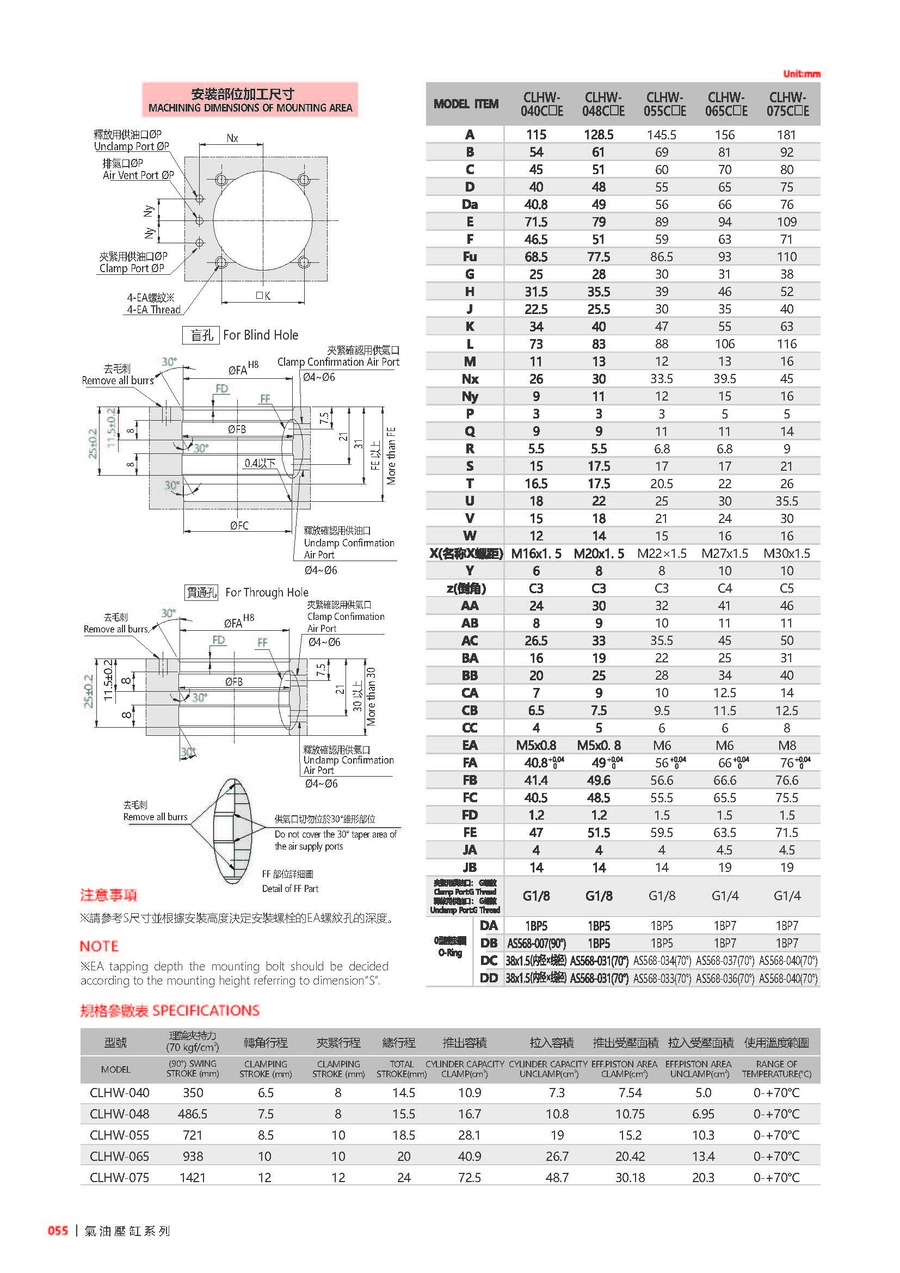 | 048 | 主体尺寸 | 040: ØD=40mm, 048: ØD=48mm, 055: ØD=55mm, 065: ØD=65mm, 075: ØD=75mm(ΦD表示本體油缸外徑尺寸) |