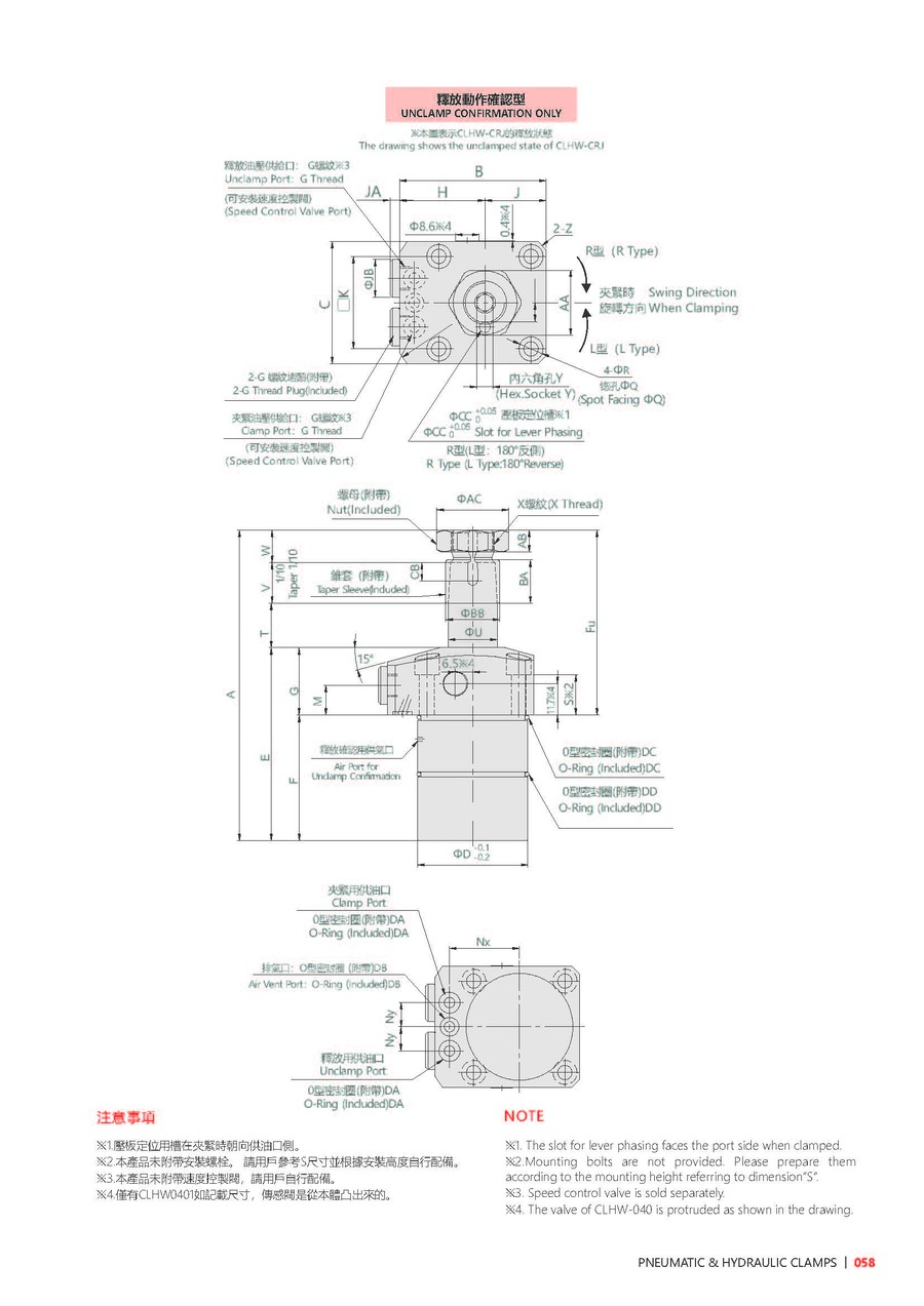 | R | 夹紧时旋转方向 | L: 逆时针 , R: 顺时针 |