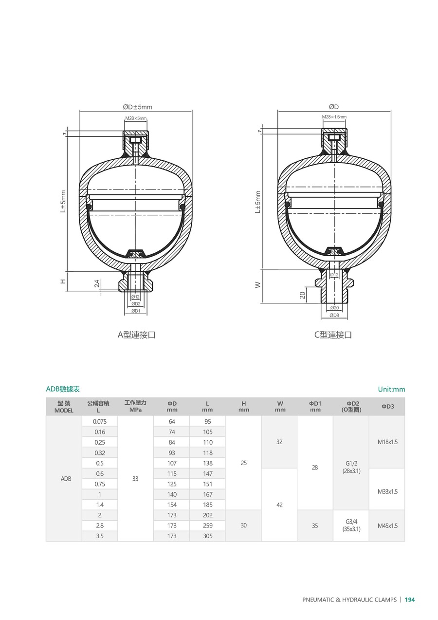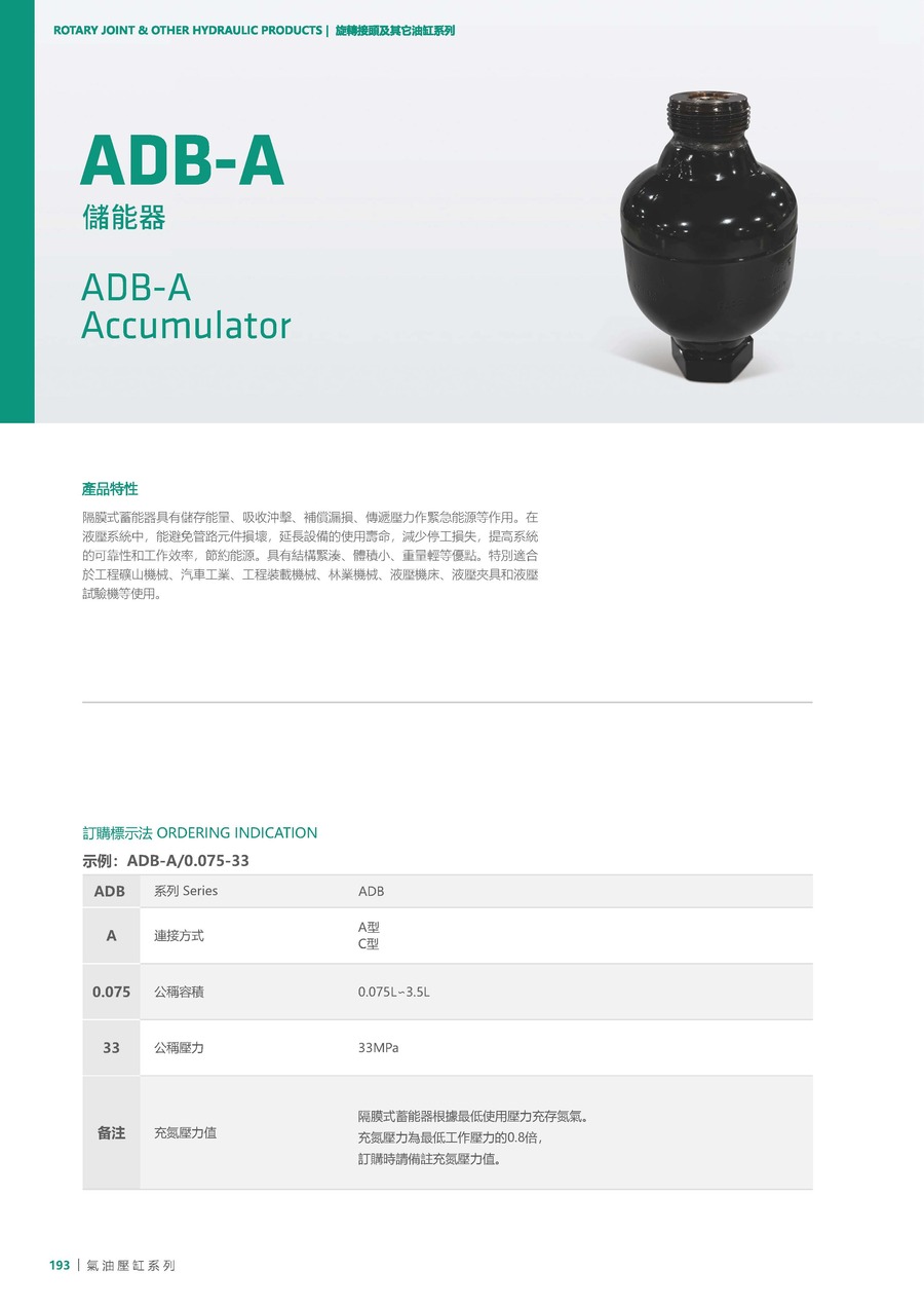 充氮压力值 - 隔膜式蓄能器根据最低使用压力充存氮气。充氮压力为最低工作压力的0.8倍,订购时请备註充氮压力值。