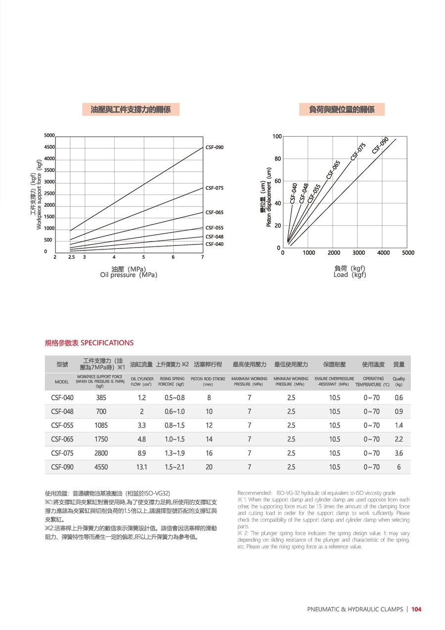 | 工件支撑力(油压为7MPa时)(kgf) | 385 | 700 | 1085 | 1750 | 2800 | 4550 |