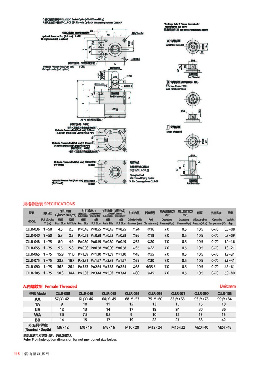 | 型号 | CLLR-036 | CLLR-040 | CLLR-048 | CLLR-055 | CLLR-065 | CLLR-075 | CLLR-090 | CLLR-105 |
