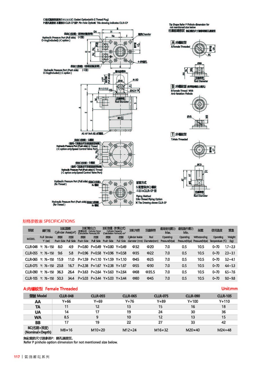 | 048 | 本体尺寸 | 036: ØD=36, 040: ØD=40, 048: ØD=48, 055: ØD=55, 065: ØD=65, 075: ØD=75, 090: ØD=90, 105: ØD=105(注: ØD是油缸本体外径尺寸) |