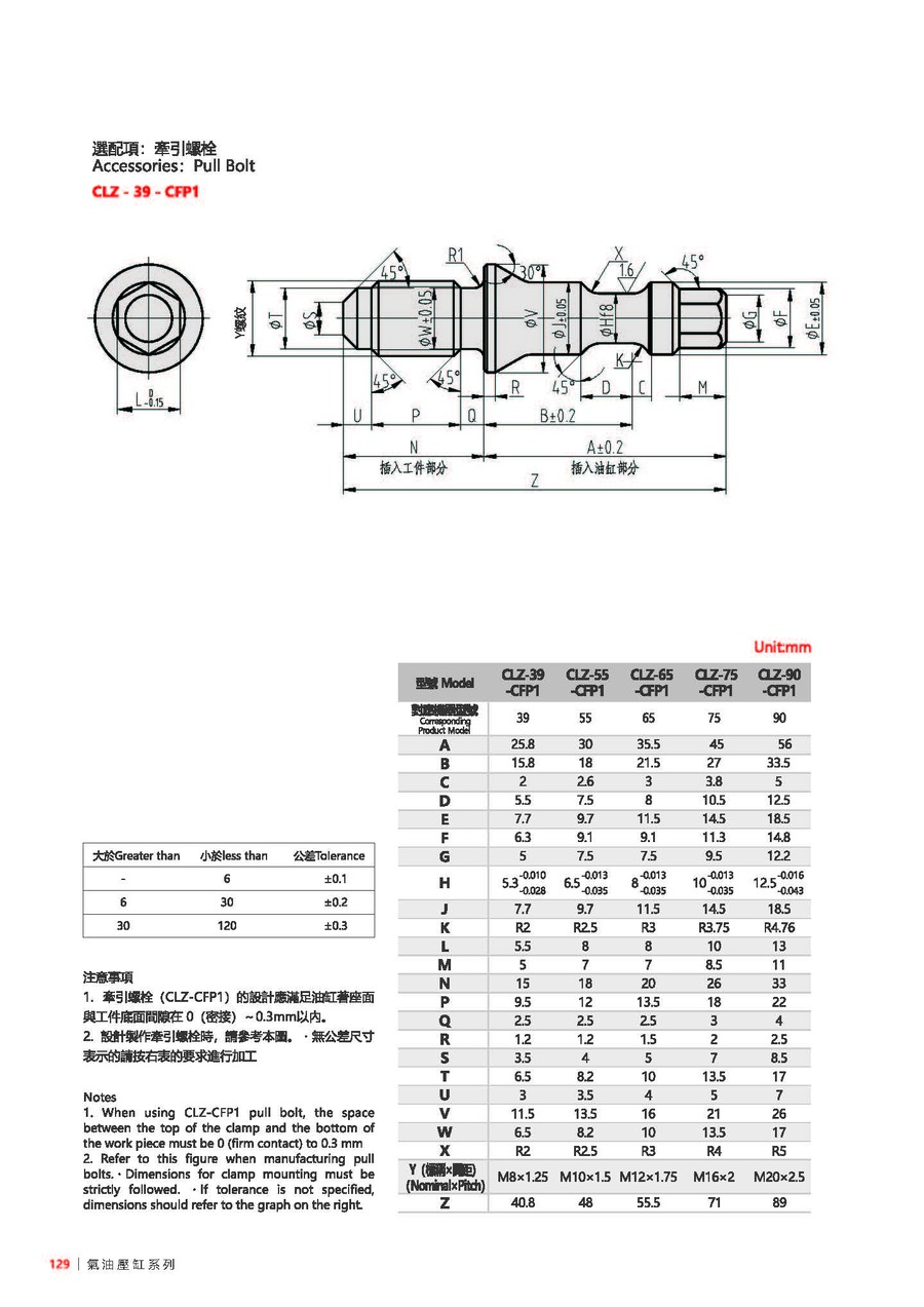 | 夹紧力计算公式(KN) | F=0.60xP-0.20 | F=0.99xP-0.29 | F=1.57xP-0.42 | F=2.33xP-0.69 | F=3.64xP-1.10 |