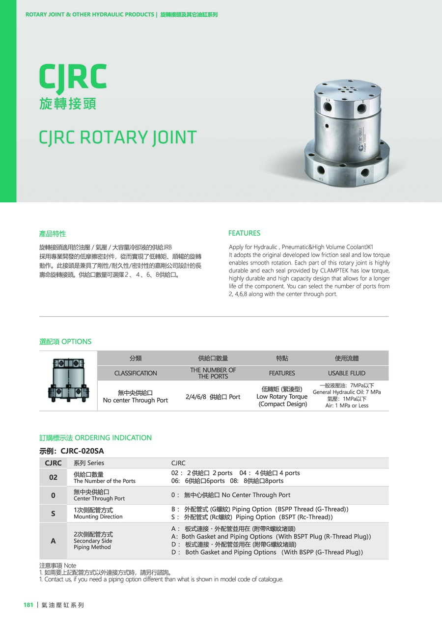 旋转接头适用于油压/气压/大容量冷却液的供给JRB。