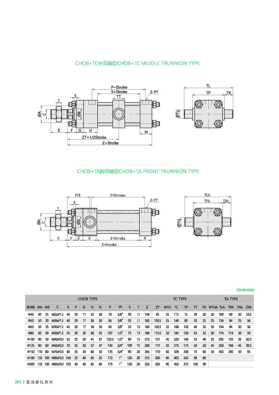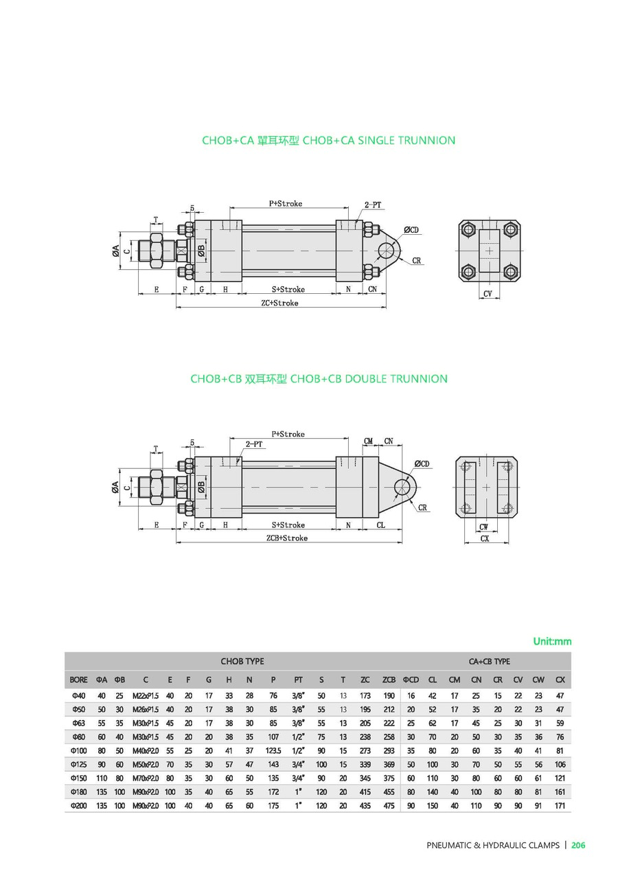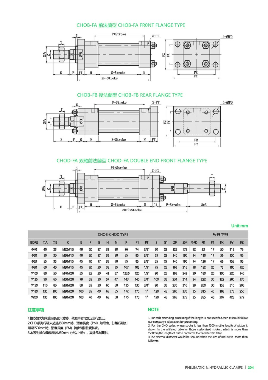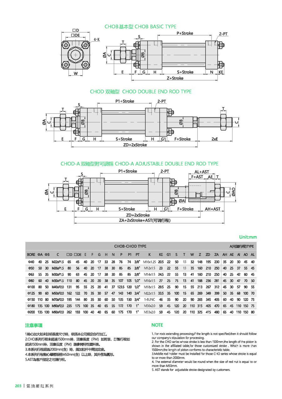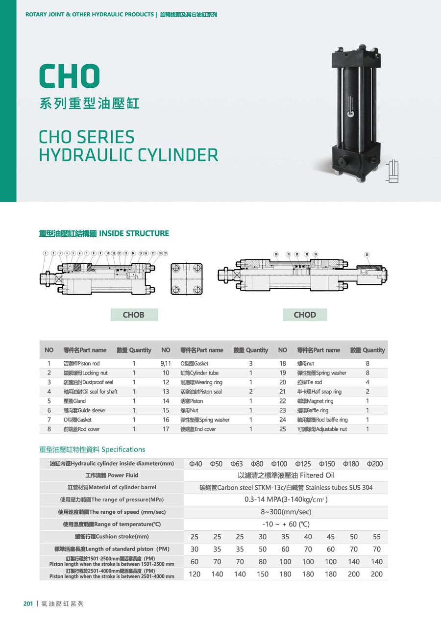 | 型号 | CHO-40 | CHO-50 | CHO-63 | CHO-80 | CHO-100 | CHO-125 | CHO-150 | CHO-180 | CHO-200 |