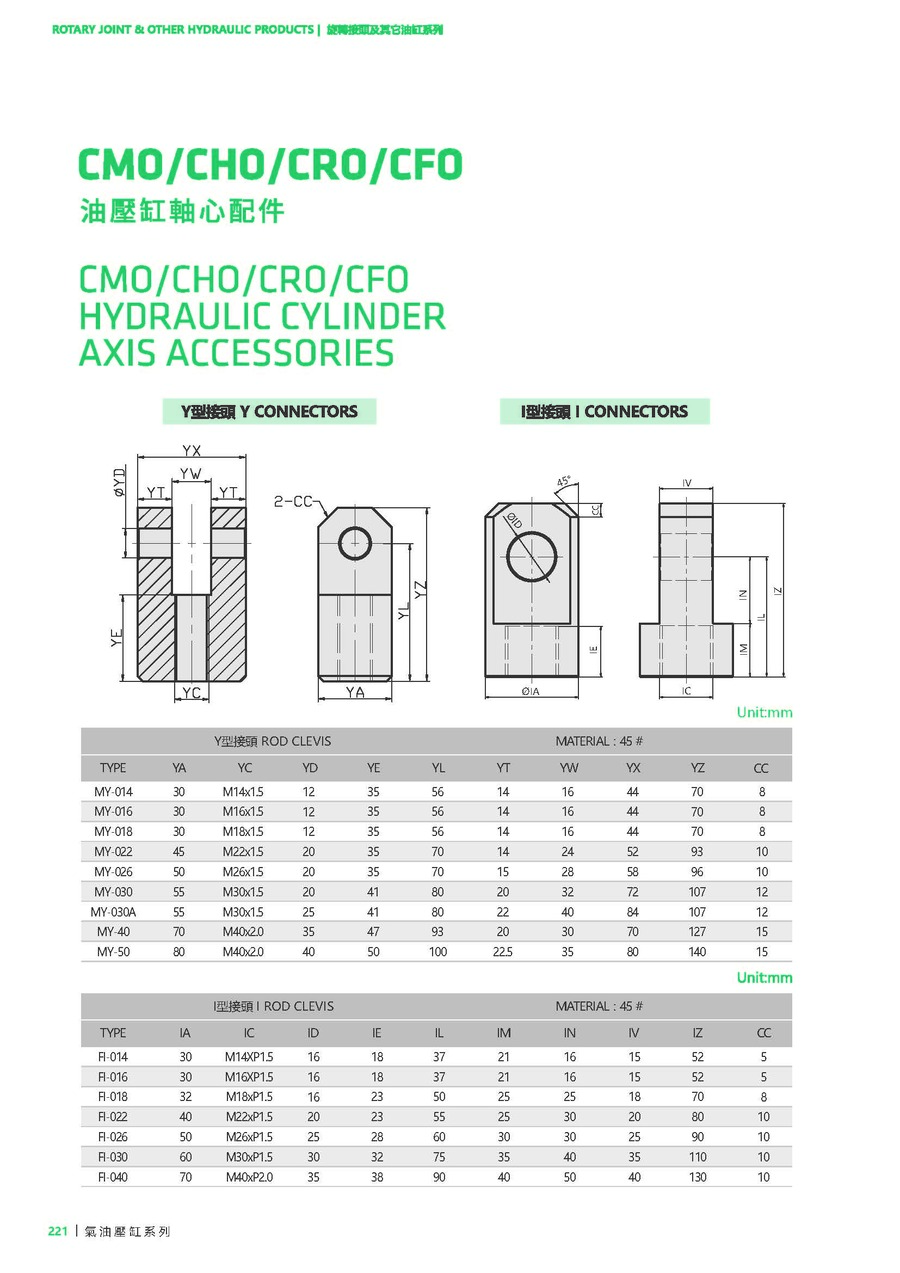 | Y | 轴心固定型式 | Y: Y型接头, YP: Y+Pin, I: I型接头, KG: 浮动接头, PHS: 鱼眼接头, T: T型接头, H: 焊套接头, A: 可调螺帽 |