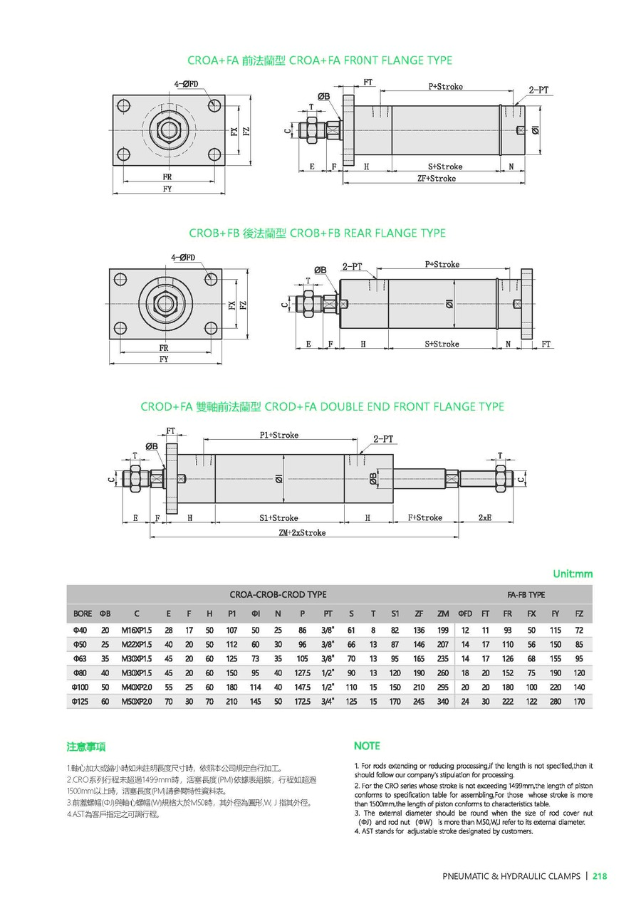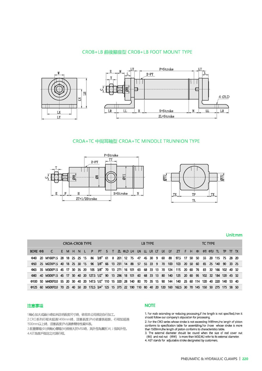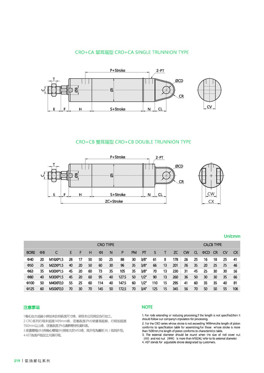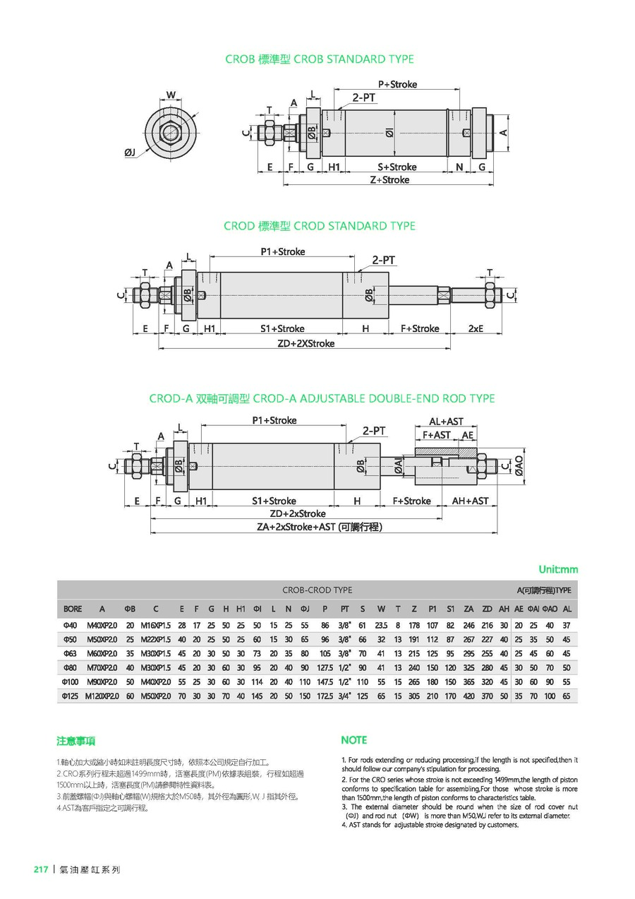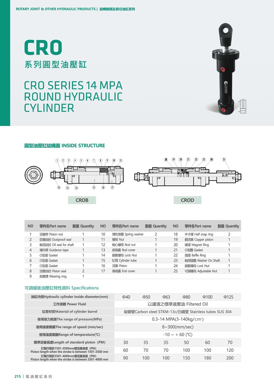 | 型号 | CRO-40 | CRO-50 | CRO-63 | CRO-80 | CRO-100 | CRO-125 |