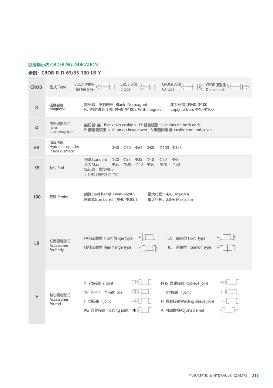 | LB | 缸体固定型式 | FA: 前法兰型, FB: 后法兰型, LB: 脚座型, TC: 中耳轴型 |