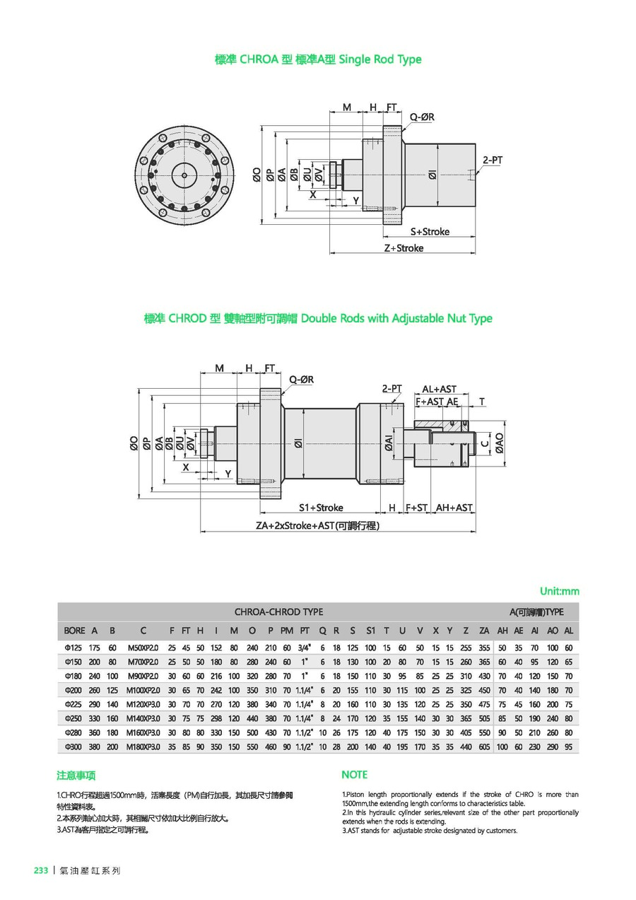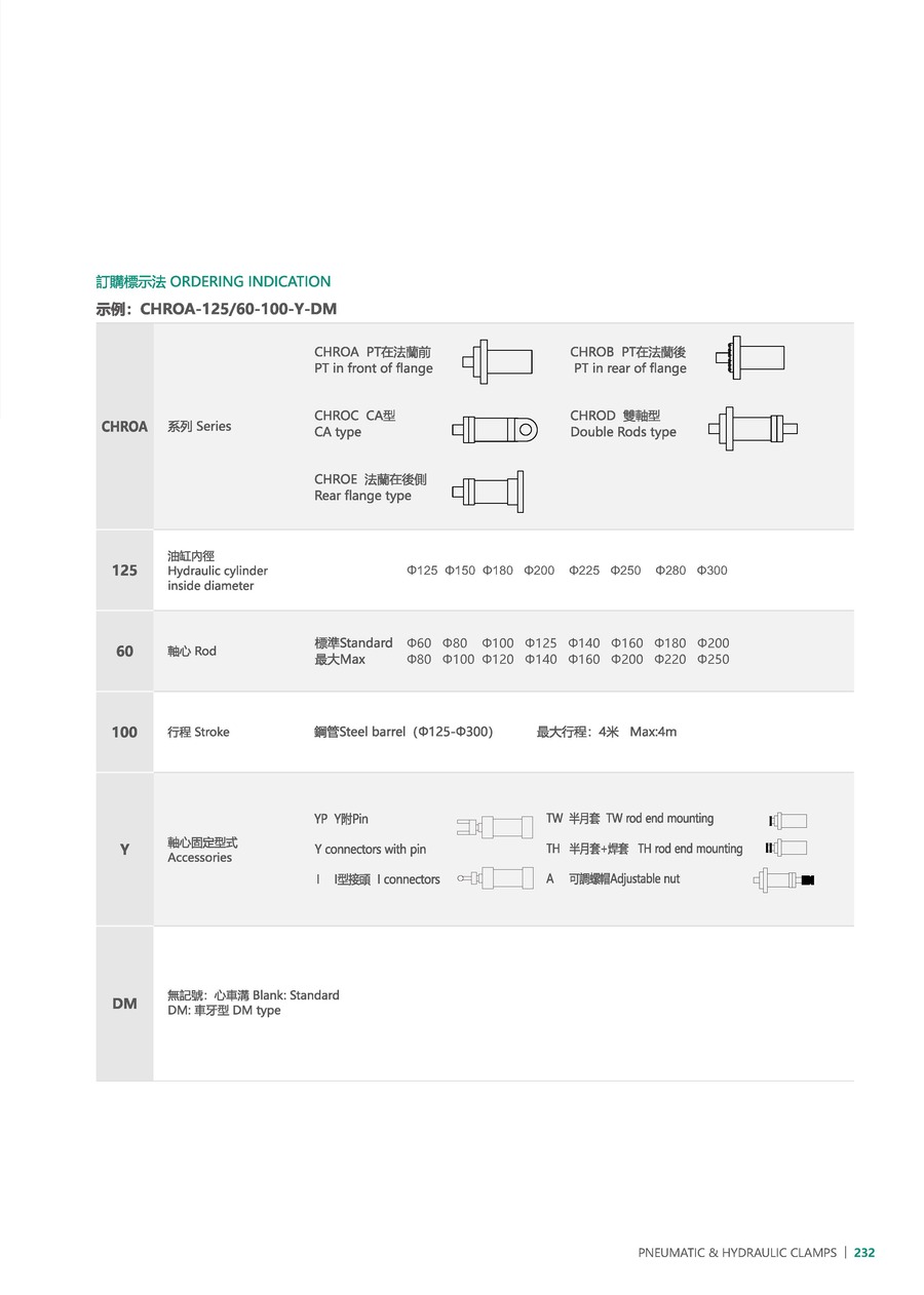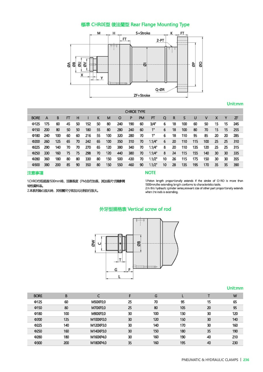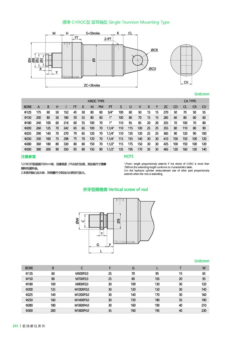 | 125 | 油缸内径 | Ø125, Ø150, Ø180, Ø200, Ø225, Ø250, Ø280, Ø300 |