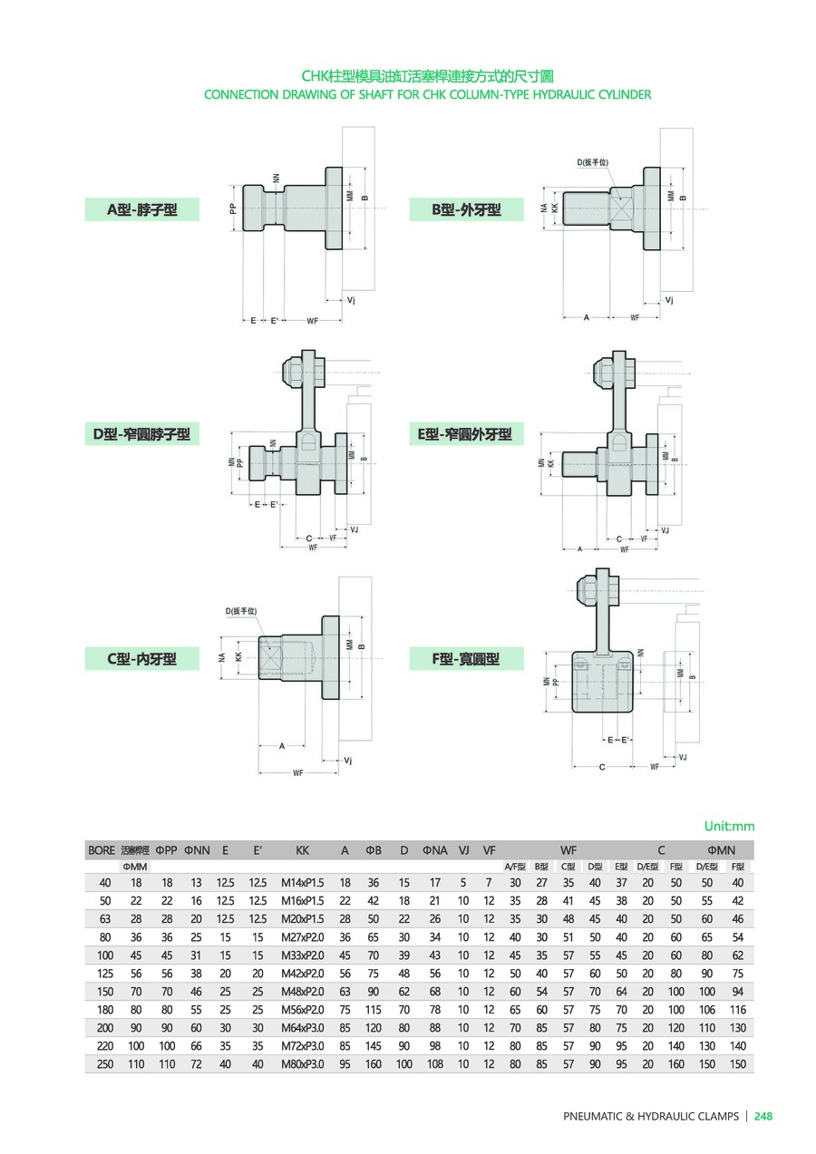| 80 | 油缸内径 | Ø40, Ø50, Ø63, Ø80, Ø100, Ø125, Ø150, Ø180, Ø200, Ø220, Ø250 |