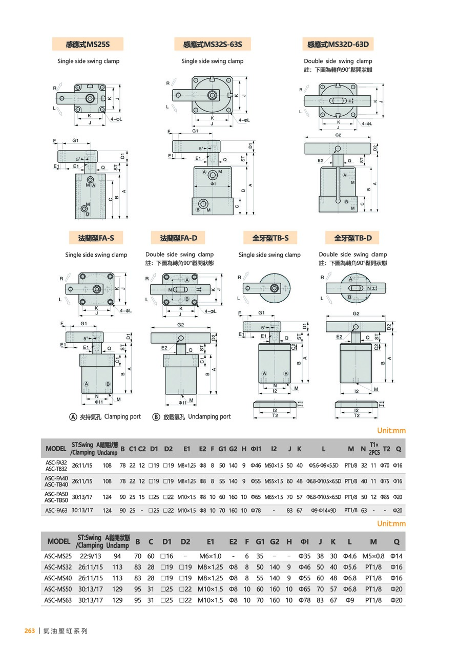 | 夹紧行程(mm) | 13 | 15, 30 | 15, 30 | 17, 34 | 17, 34 |