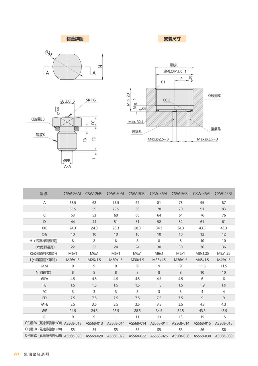 | 30 | 气缸外径 | M26x1.5, M30x1.5, M36x1.5, M45x1.5 |