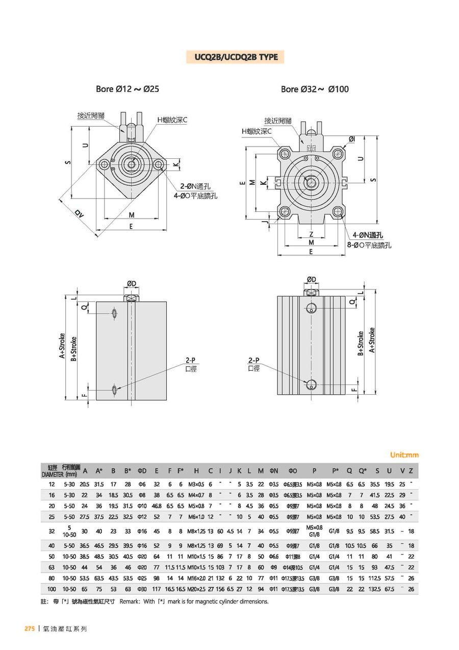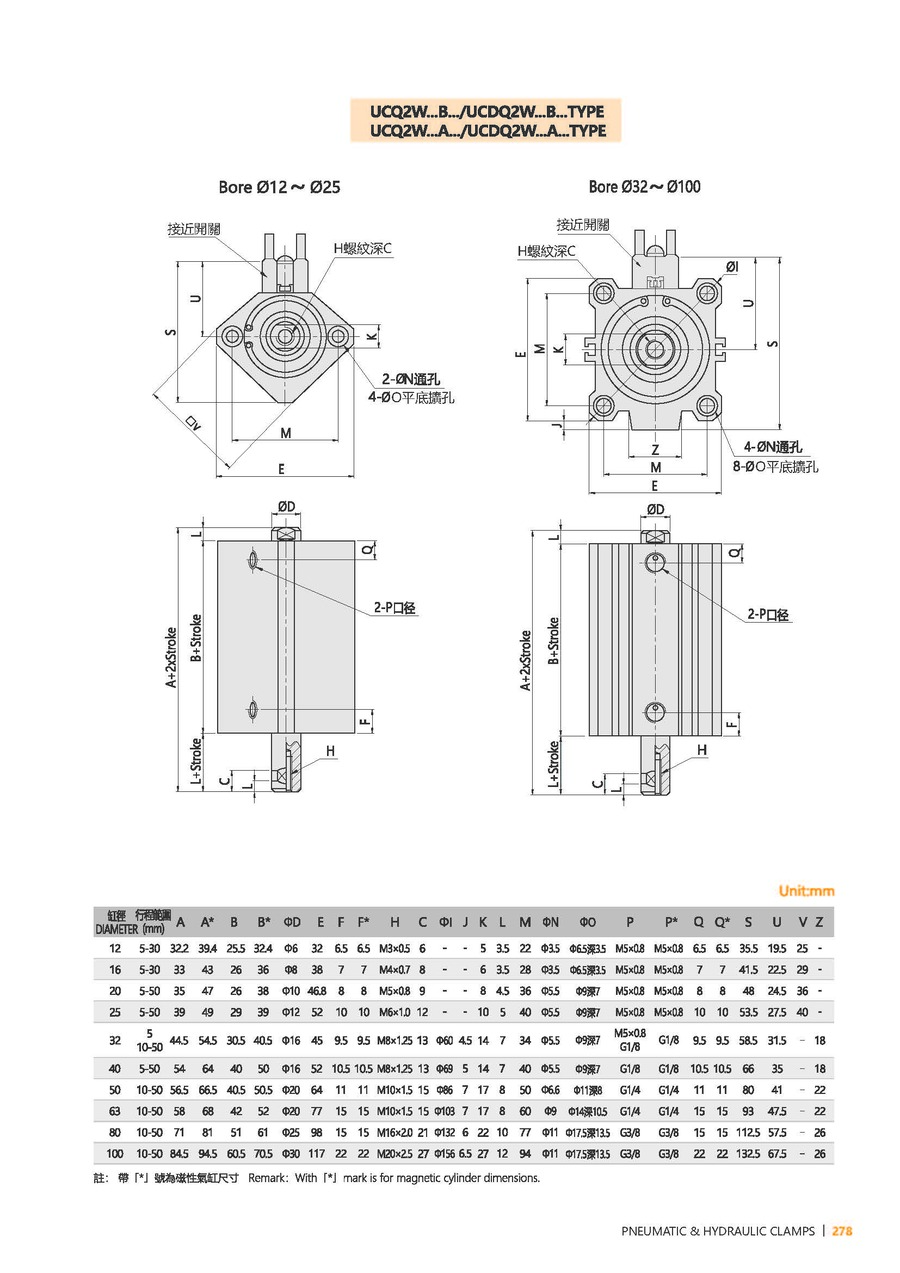 | 型号 | UCQ2-12 | UCQ2-16 | UCQ2-20 | UCQ2-25 | UCQ2-32 | UCQ2-40 | UCQ2-50 | UCQ2-63 | UCQ2-80 | UCQ2-100 |