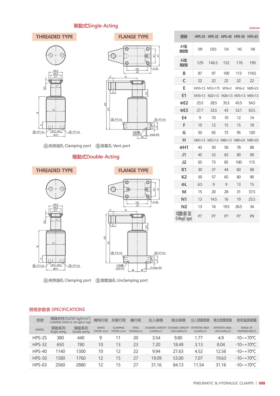| 理论夹持力(复动)(250kgf/cm²) | 440 | 780 | 1300 | 1760 | 2880 |
