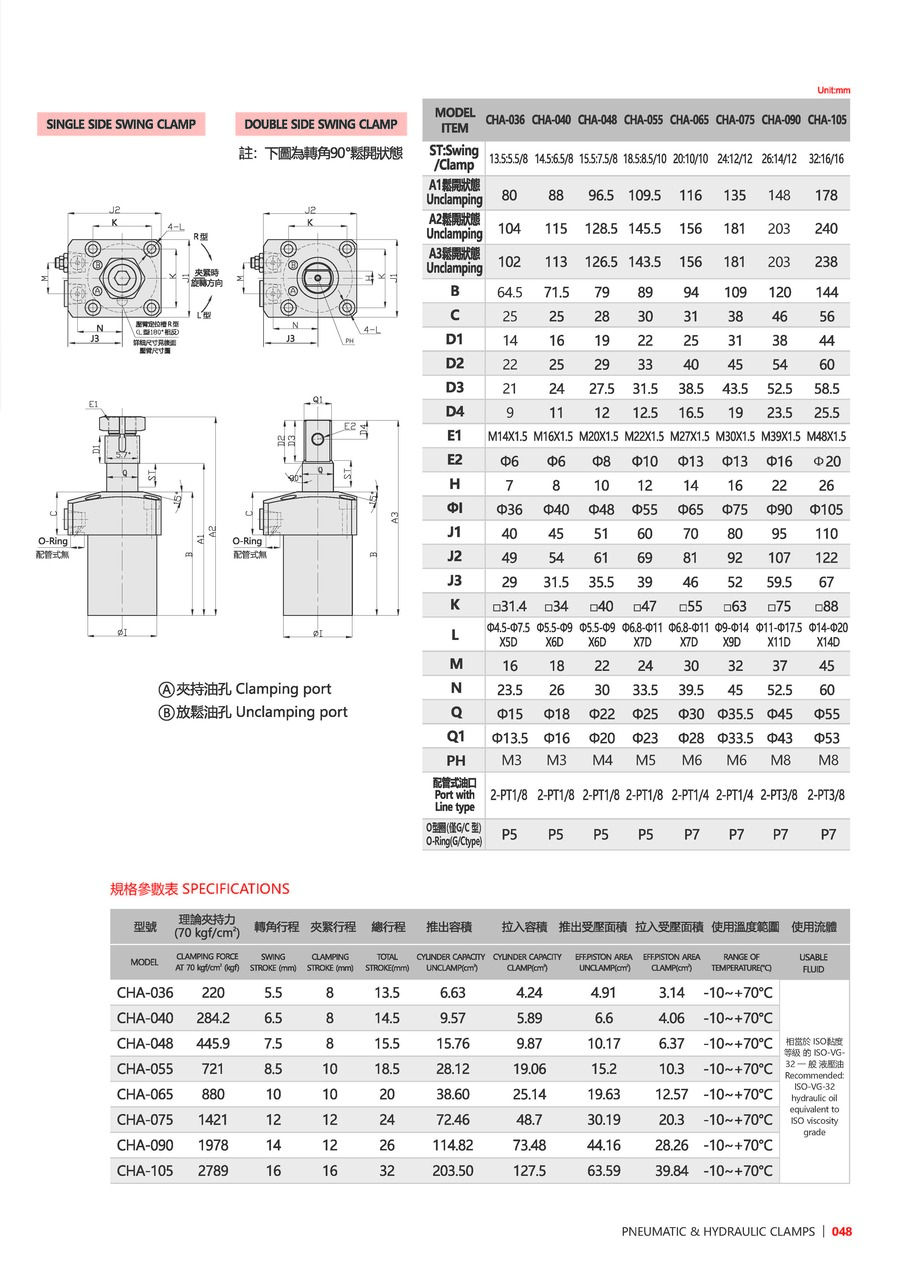 | 型号 | CHA-036 | CHA-040 | CHA-048 | CHA-055 | CHA-065 | CHA-075 | CHA-090 | CHA-105 |