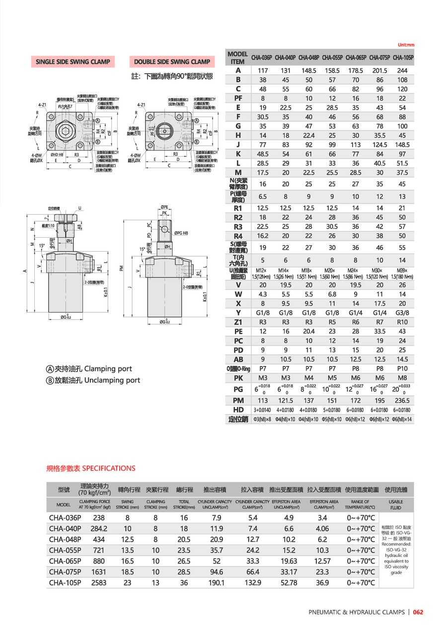| 夹紧行程(mm) | 8 | 8 | 8 | 10 | 10 | 10 | 13 |
